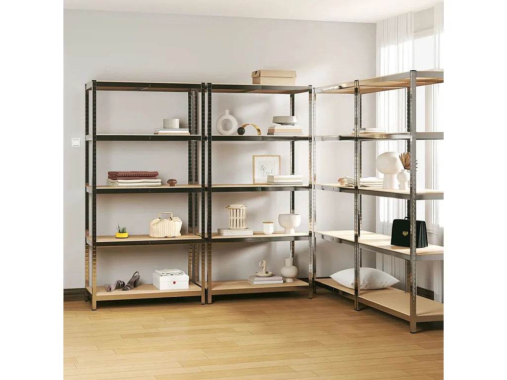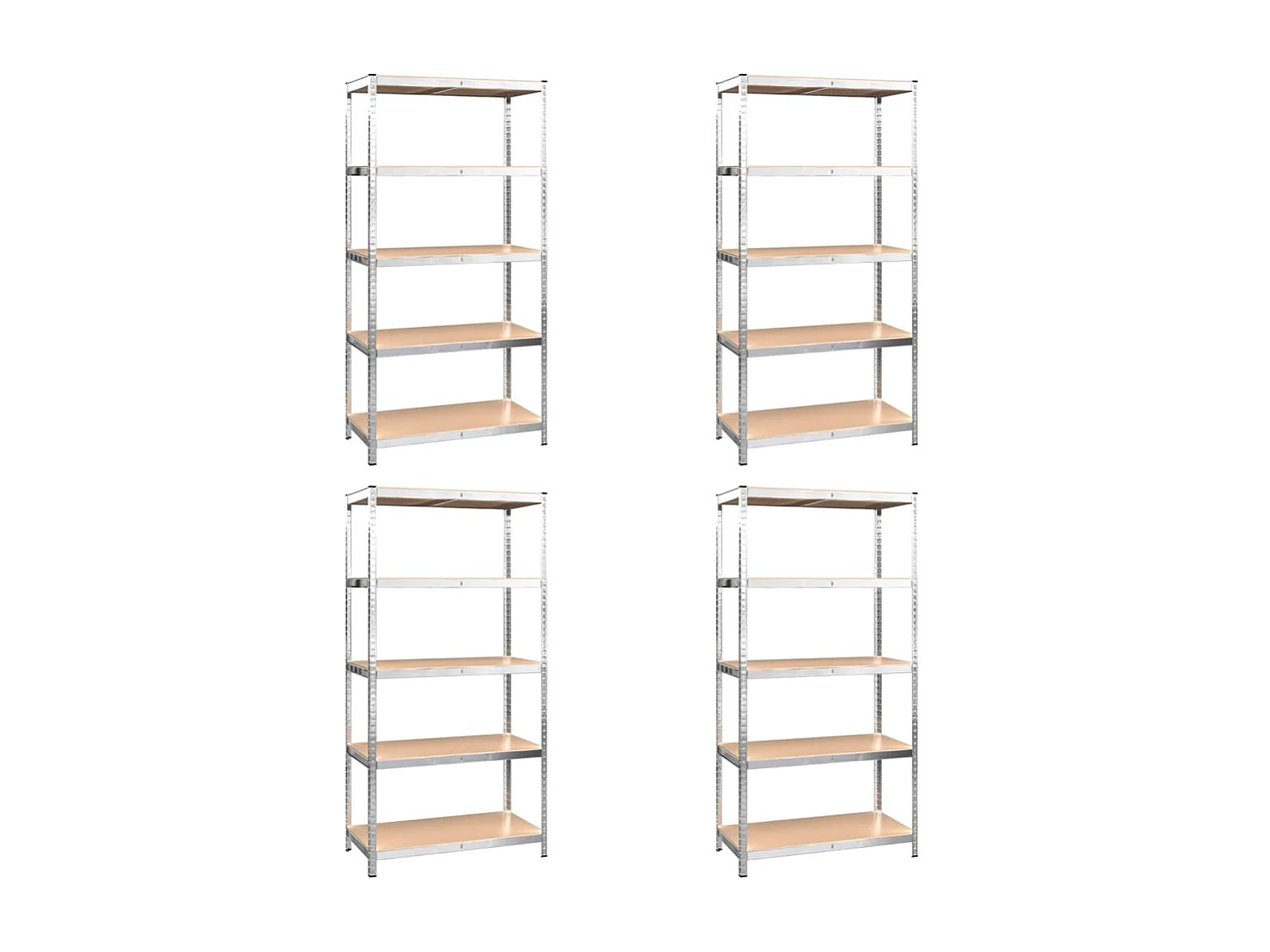 Opbergrekken 5-laags 4 st staal en bewerkt hout zilverkleurig NL897276