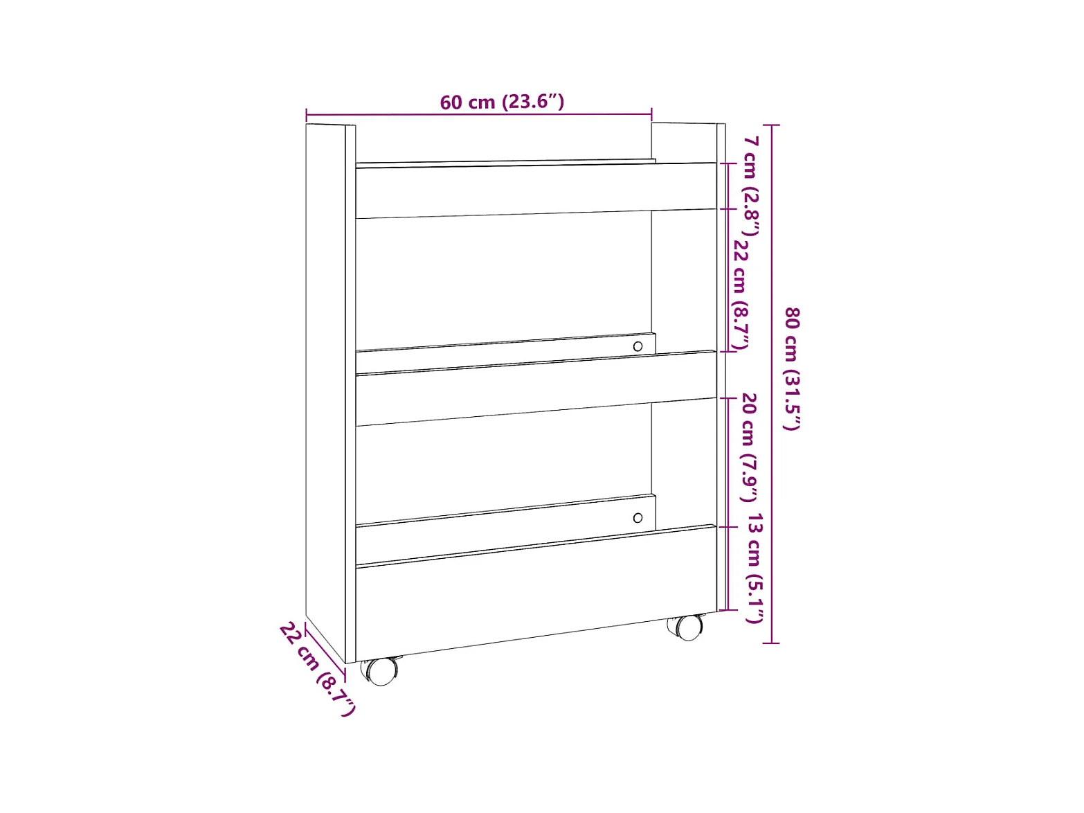 Opbergtrolley smal 3-laags bewerkt hout grijs sonoma eiken