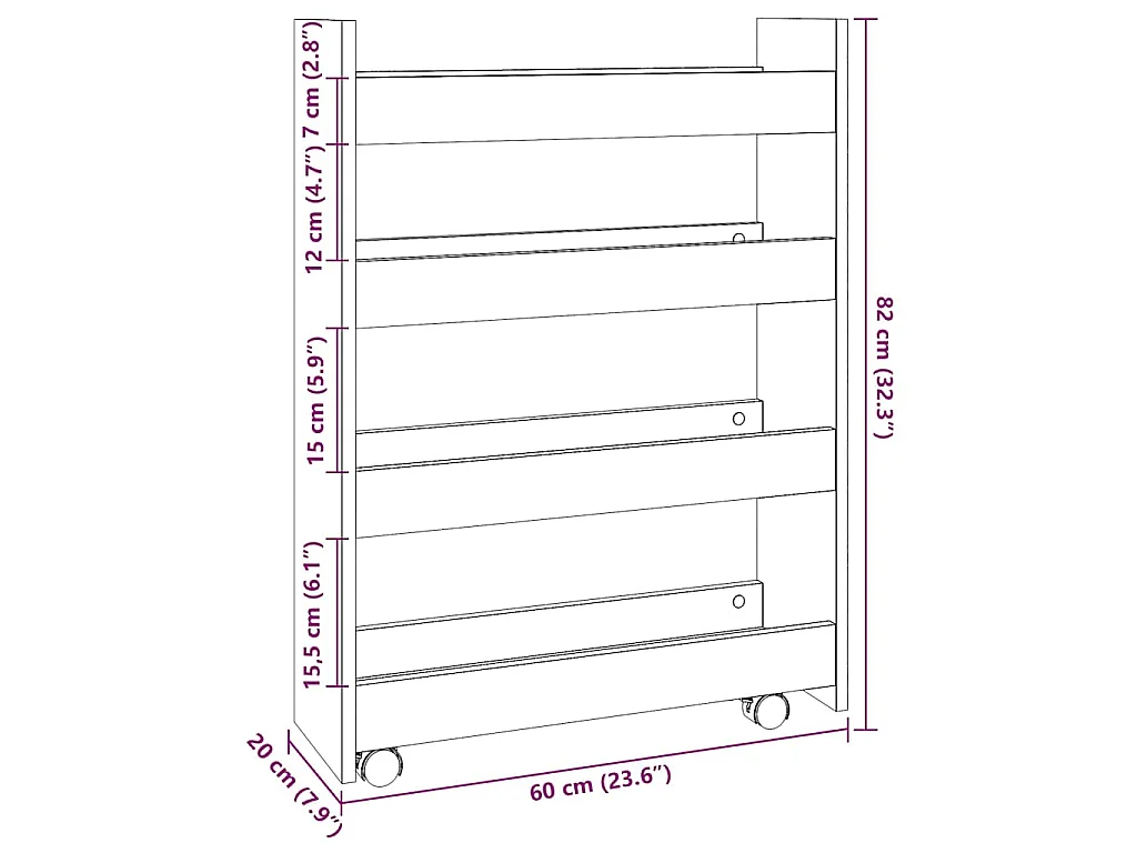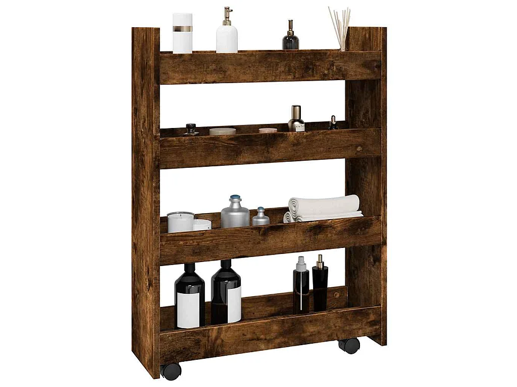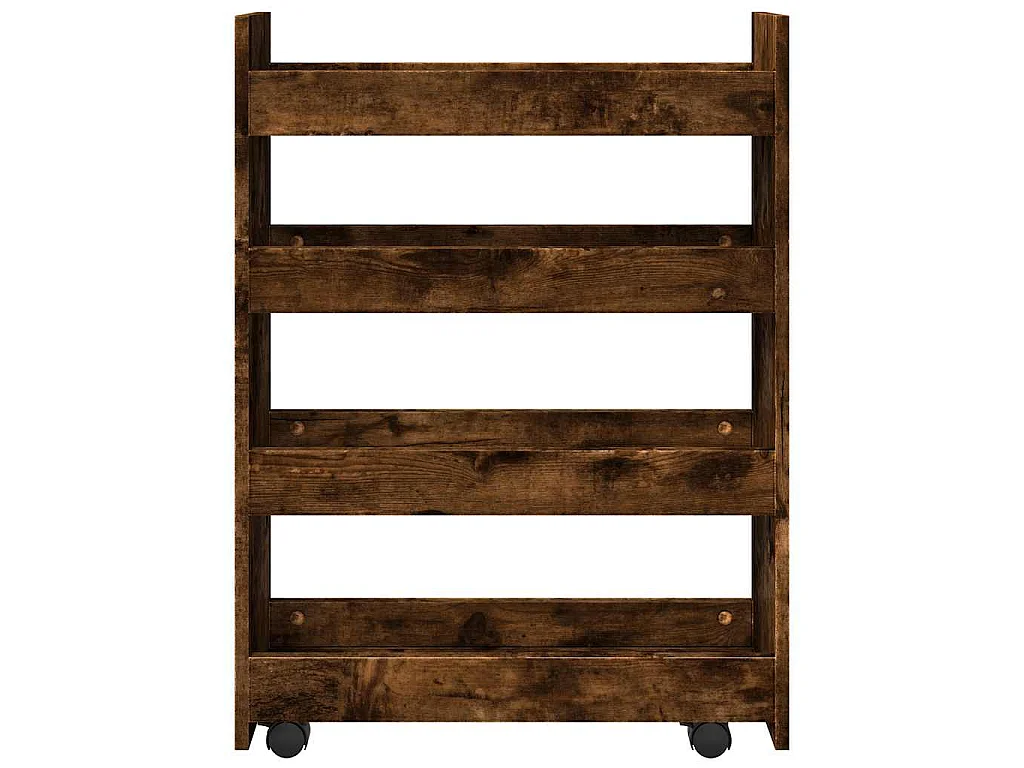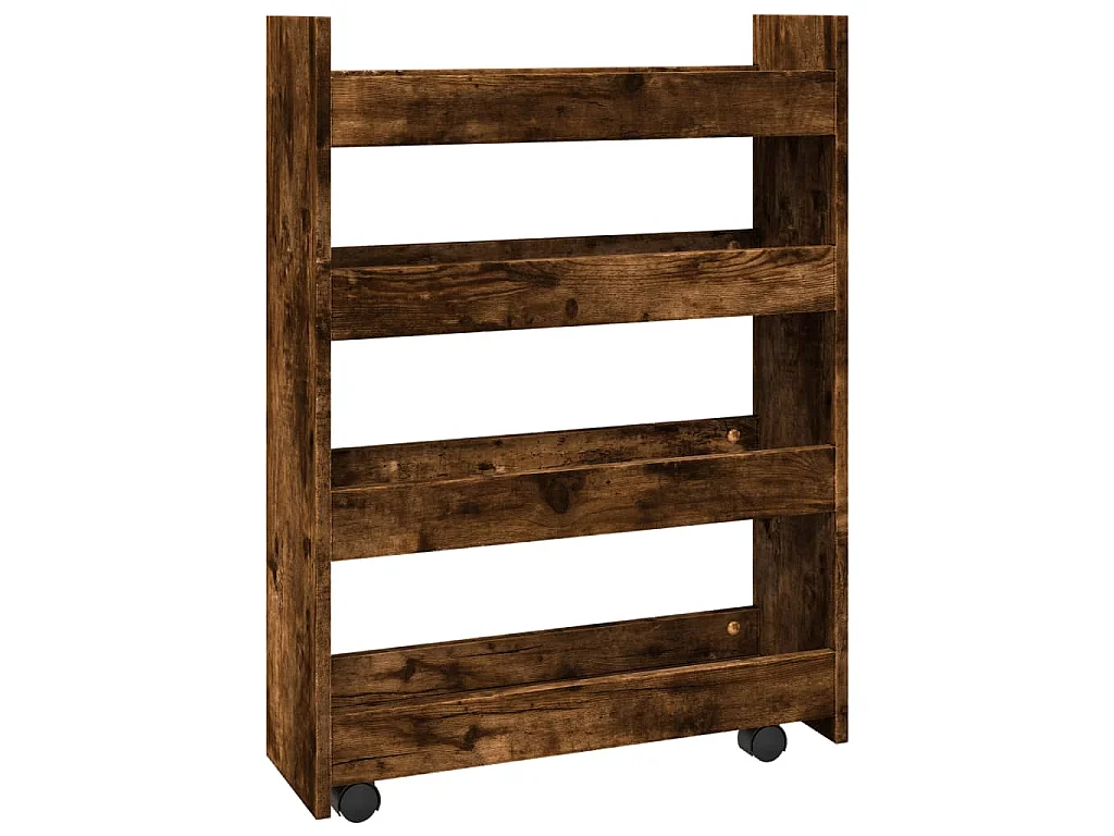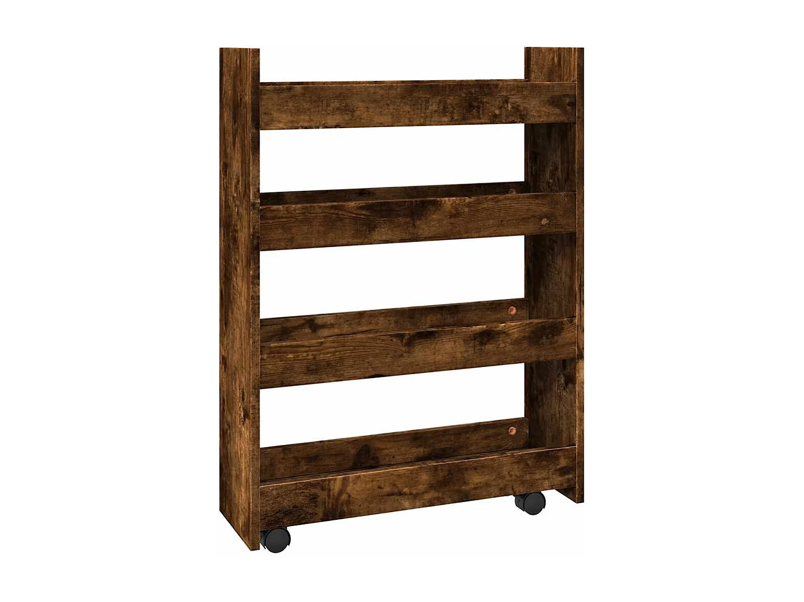 Opbergtrolley smal 4-laags bewerkt hout gerookt eikenkleurig