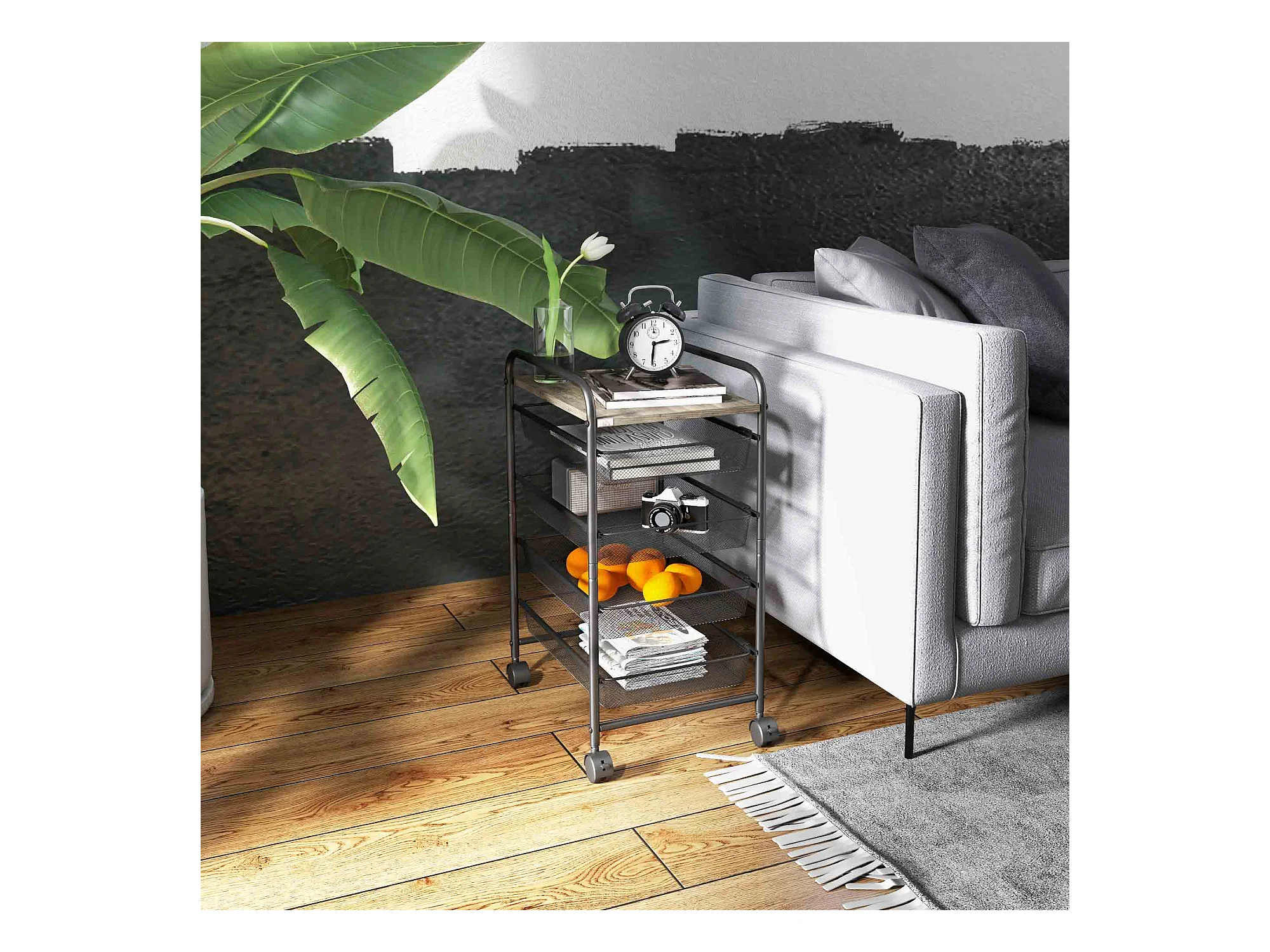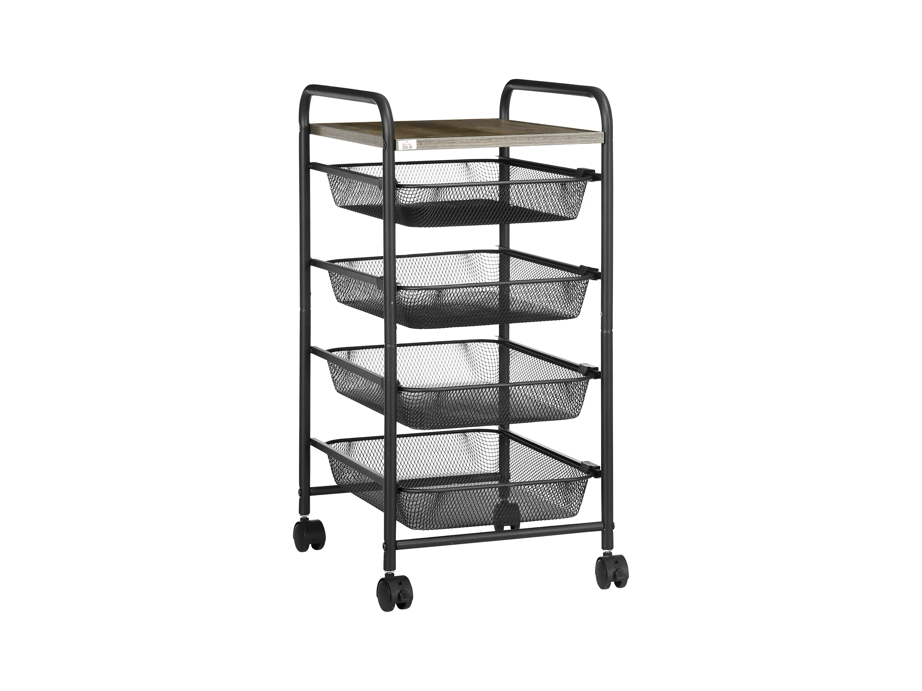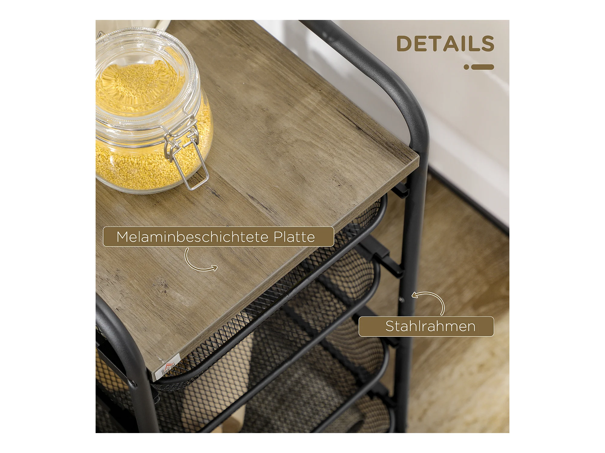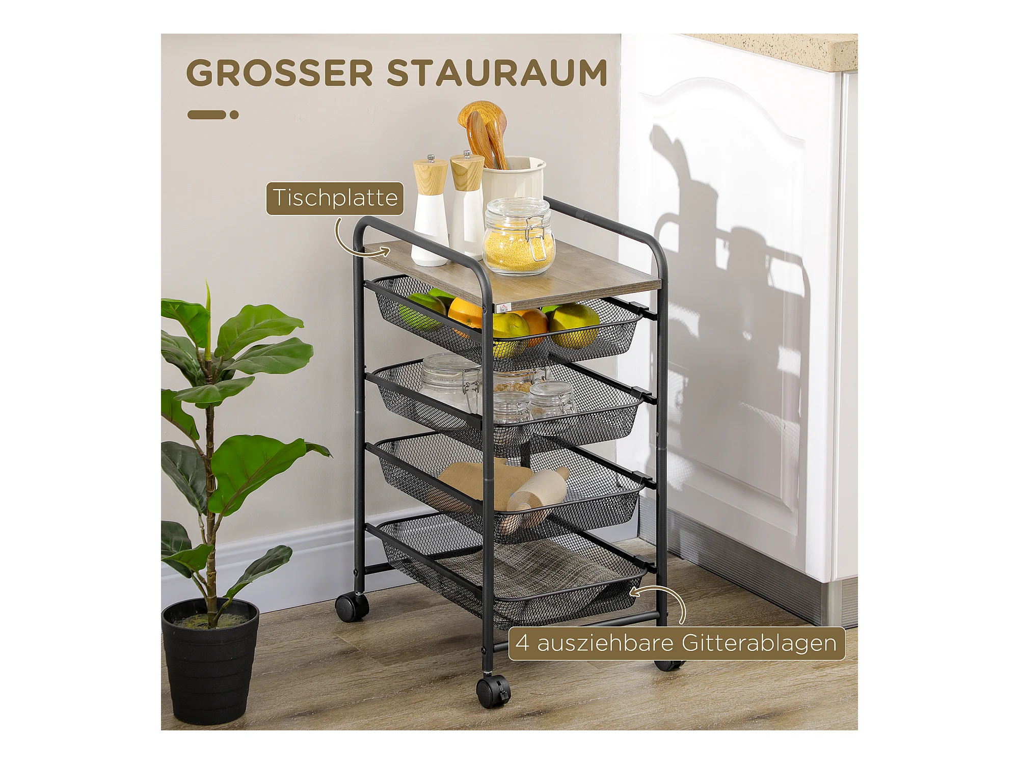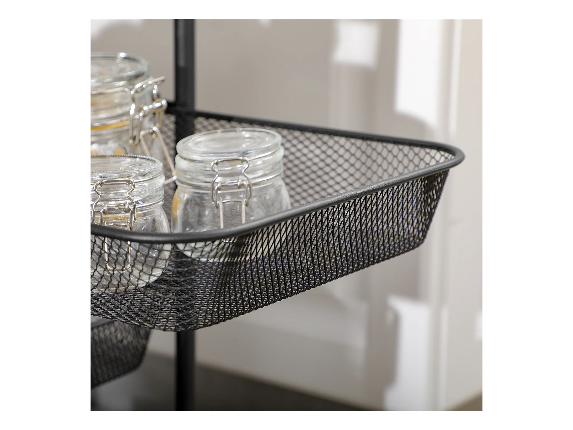 Opbergwagen op wielen, 4 manden, verrijdbaar plateau, staal, zwart (41,5x31x66 cm)