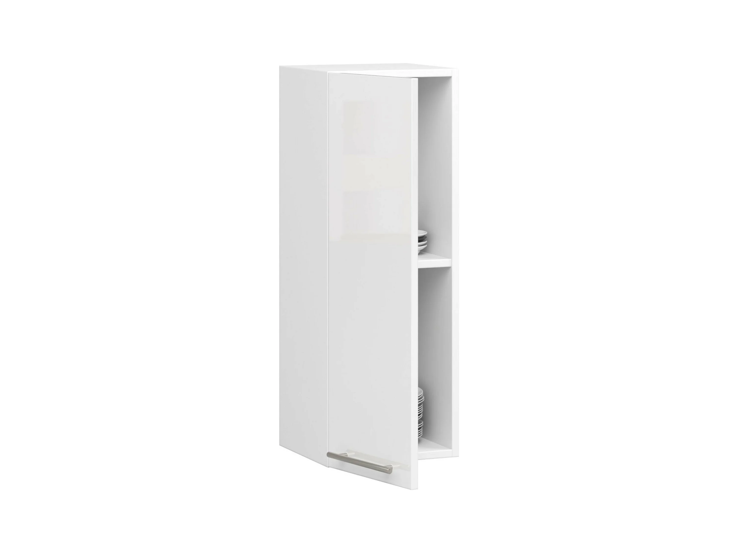 Ophangkast Oliwia Hoogglans Wit 30cm - Keukenwandkast met 1 Deur, Zelfmontage, 72cm Hoog, ABS Randen, Wit Korpus met Glanzende Voorzijde, Moderne Opbergoplossing