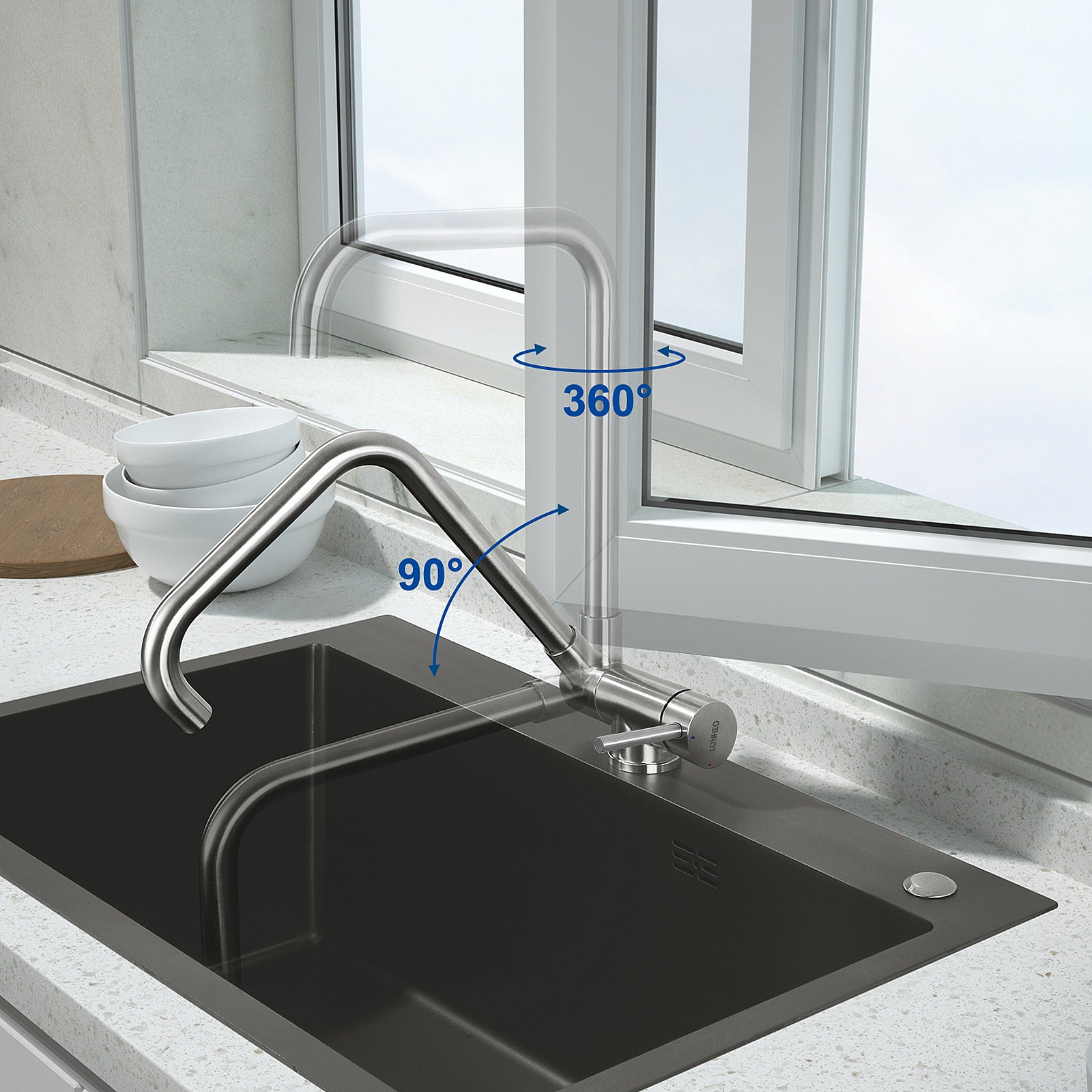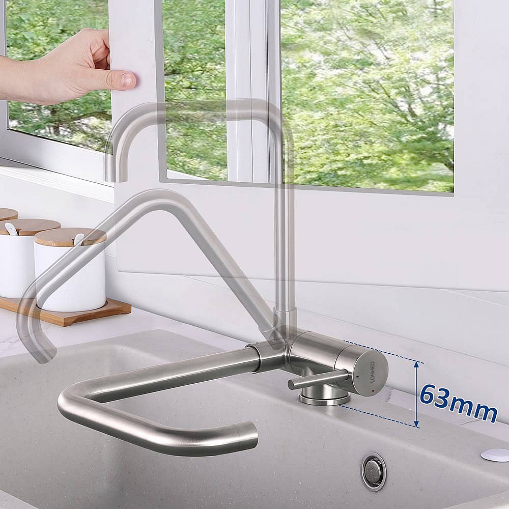 Opklapbare Keukenmengkraan, Opvouwbare Keukenkraan Onder Raam, Keukenkraan met hoge 360° draaibare uitloop en demonteerbare beluchter, geborsteld