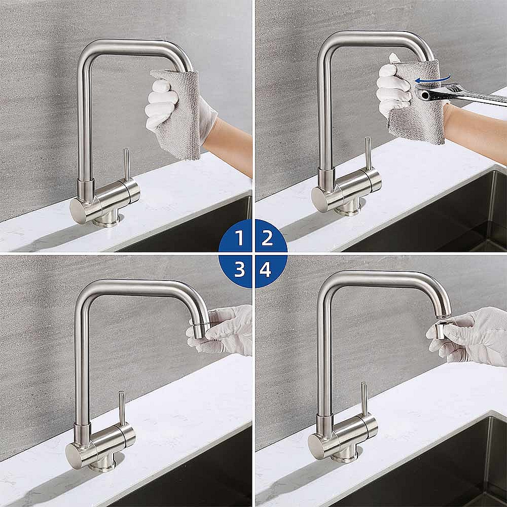 Koudwater keukenkraan, 360° draaibaar, enkele hendel koud water gootsteen kraan, roestvrij staal- geborsteld