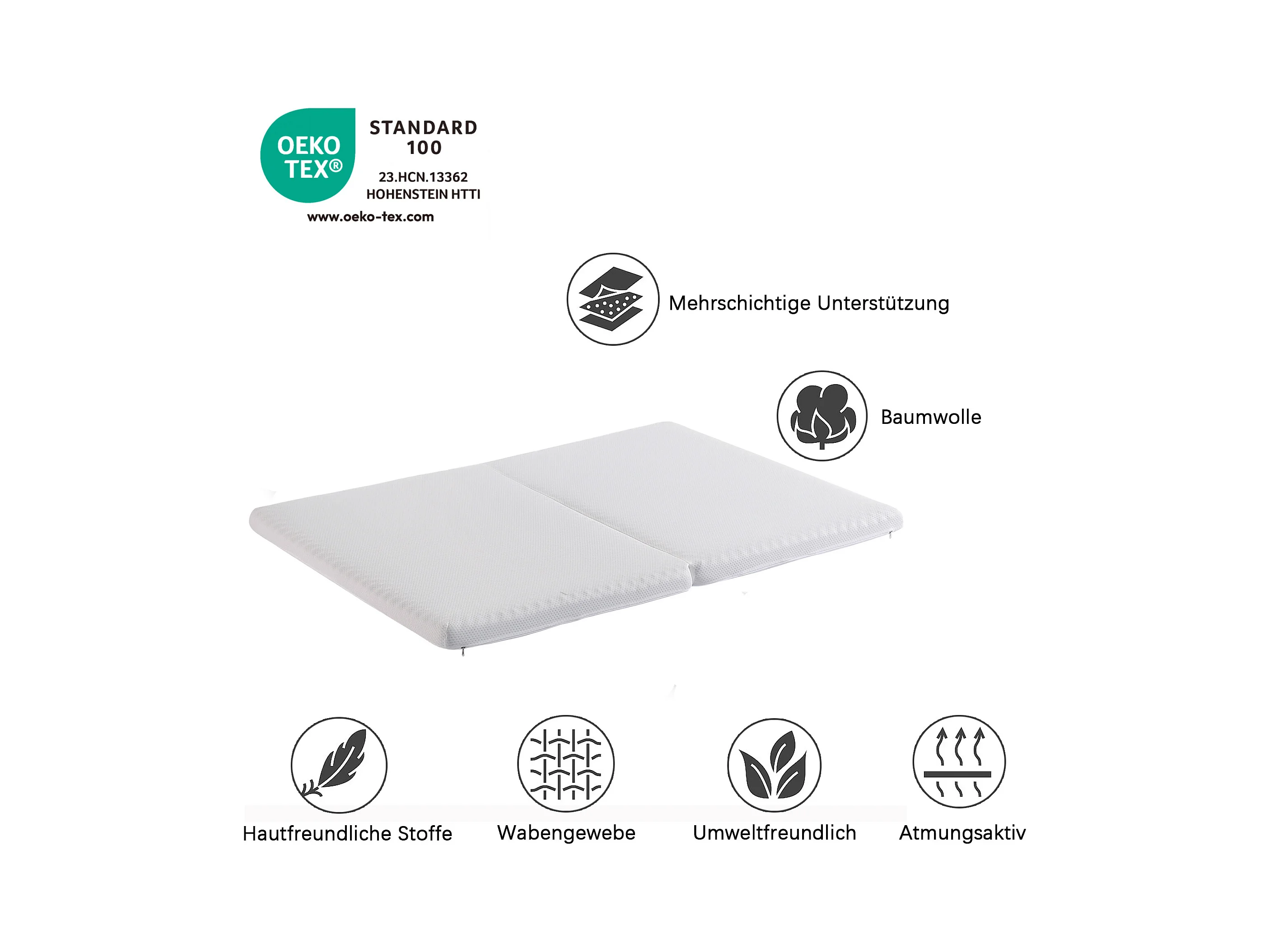 Opvouwbaar matras, honingraatstof, Oeko-Tex gecertificeerd, ergonomisch, ademend en duurzaam, compressie verpakt, 23D schuim, wit (140x200x10 cm)