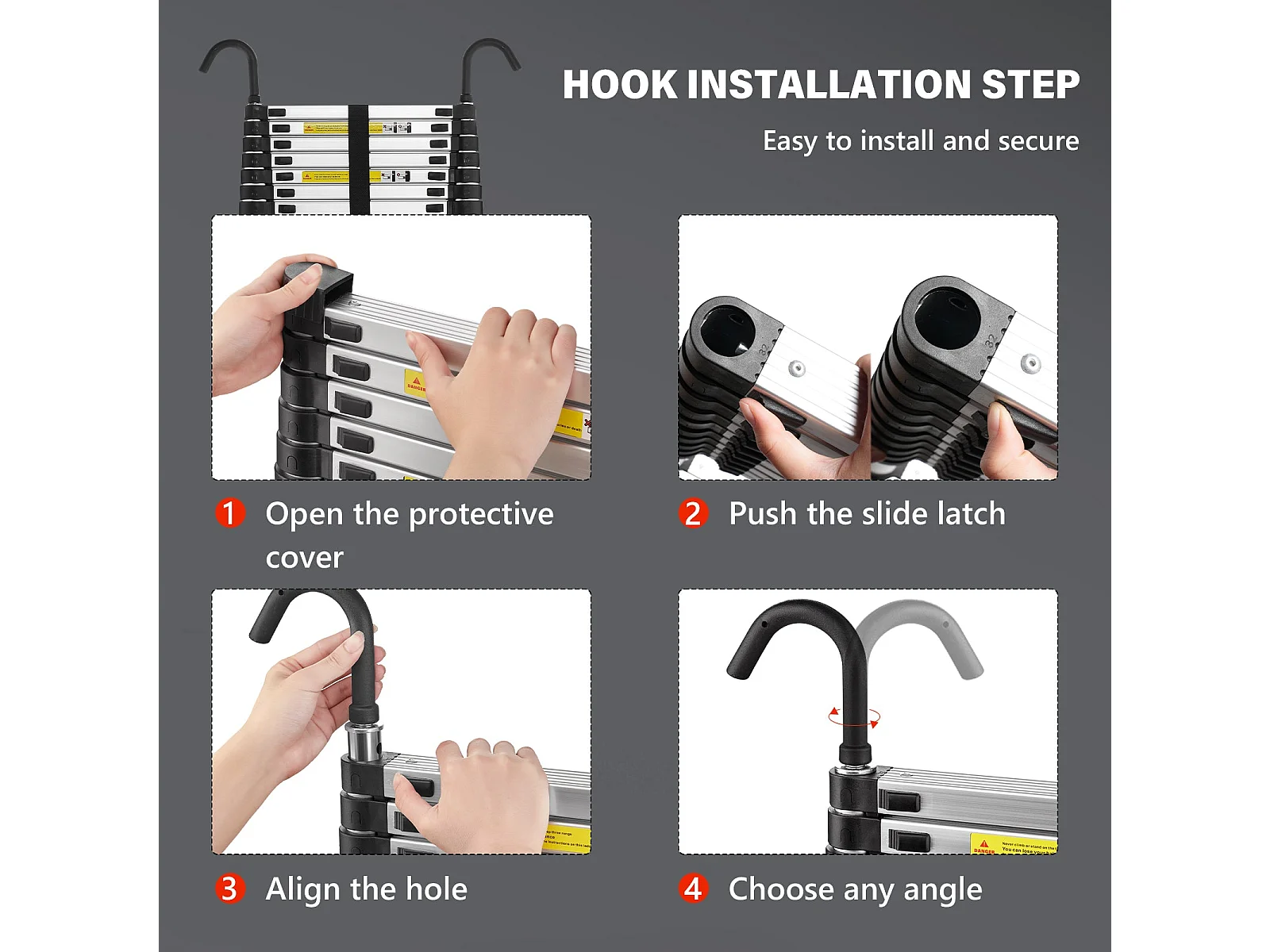 Opvouwbare DIY Telescoopladder van Aluminium 5M, Maximale Belasting 150kg