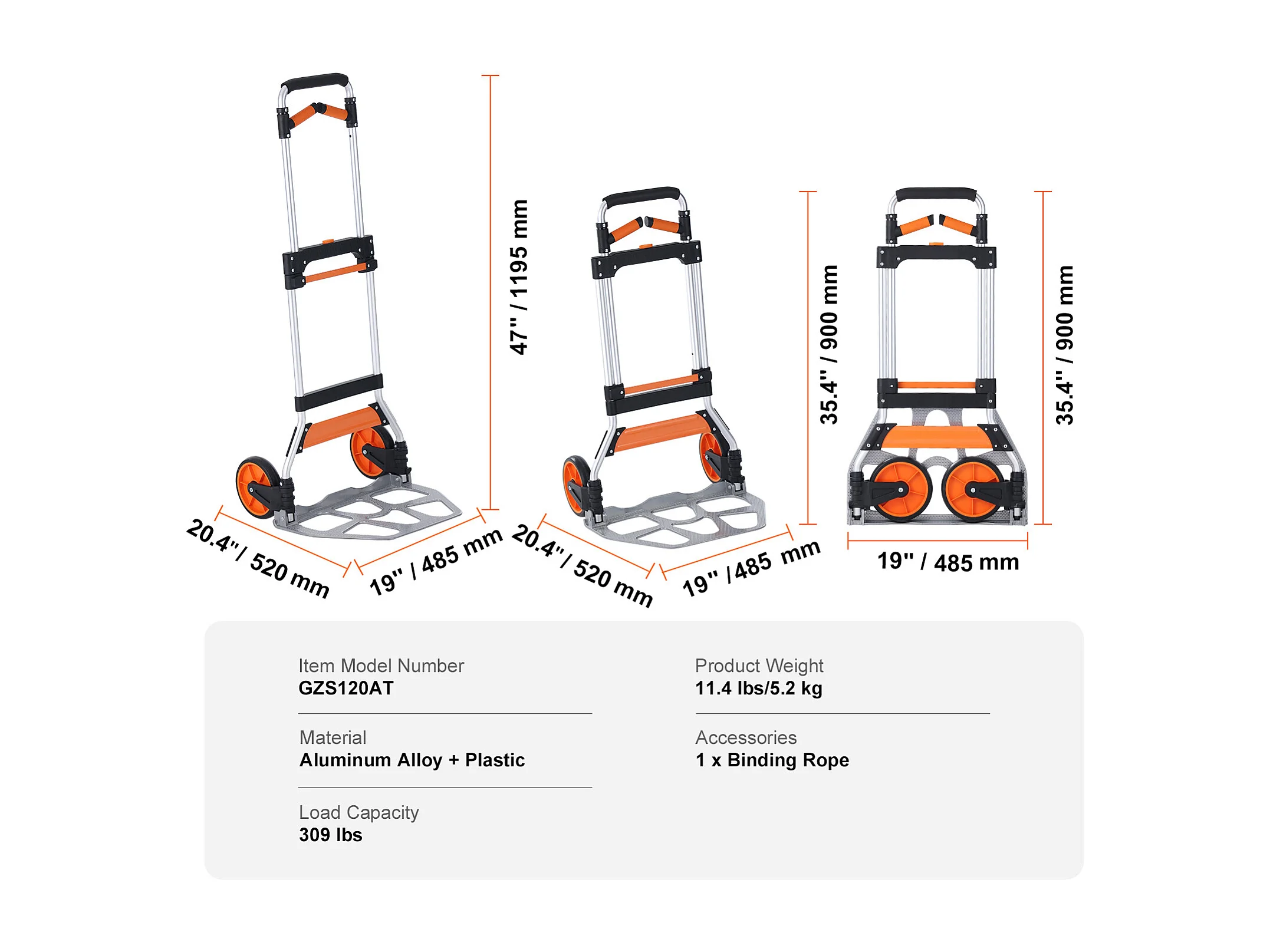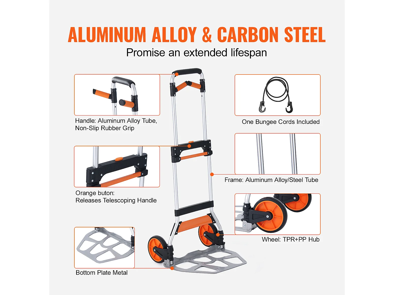 Opvouwbare Handkar SucceBuy, Aluminium Bagagekar, 149 kg, Elastiek