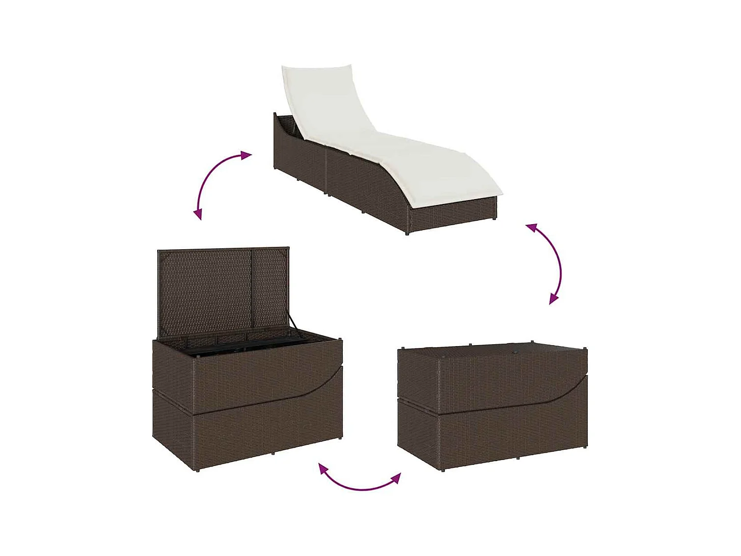 Opvouwbare loungestoel met bruin opbergkussen van geweven hars
