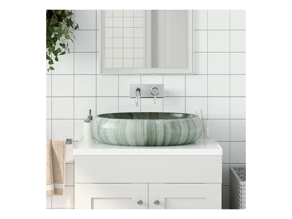 Opzetwasbak ovaal 59x40x15 cm keramiek groen en bruin BE415006
