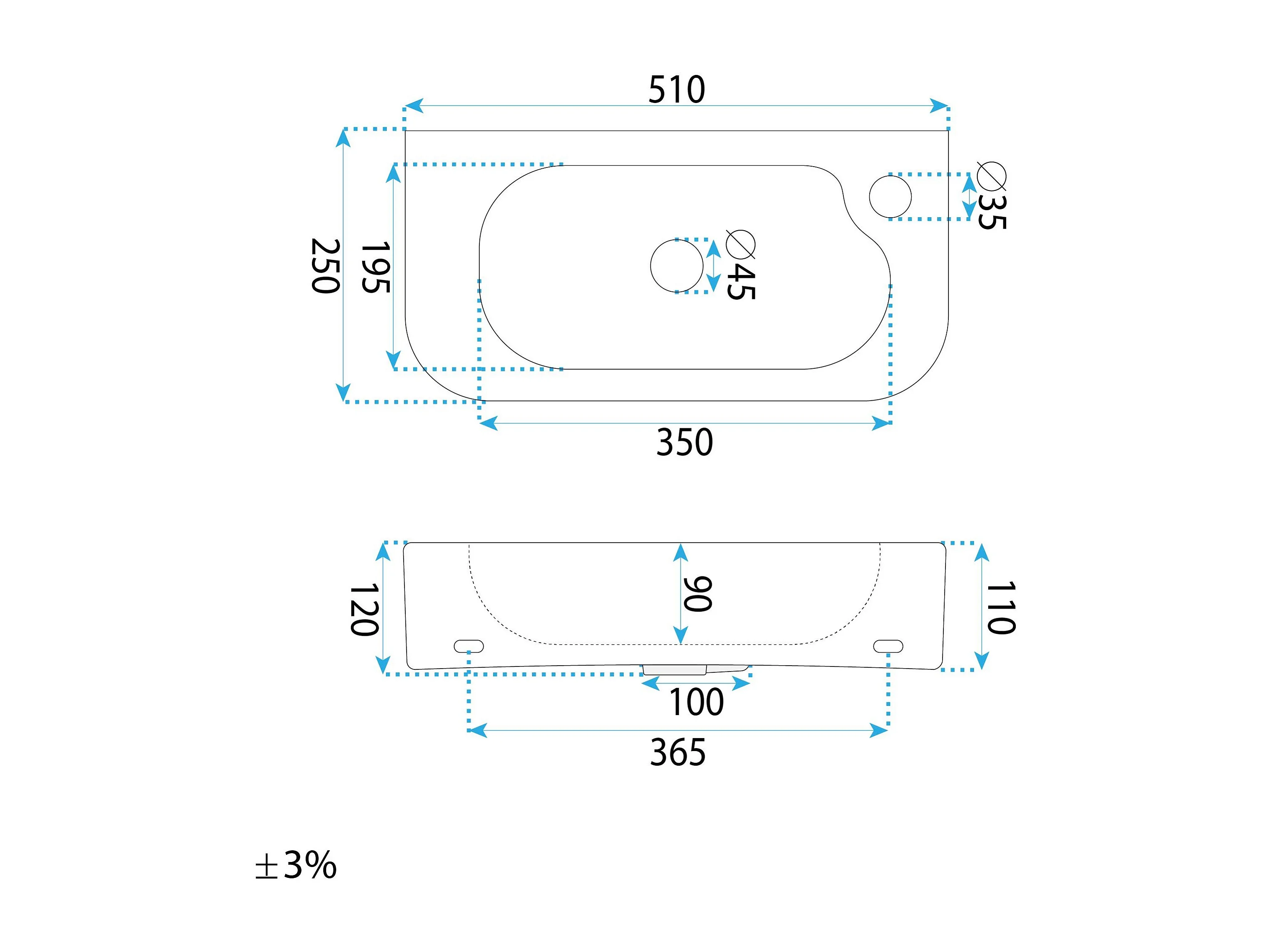 Wastafel rechthoek
