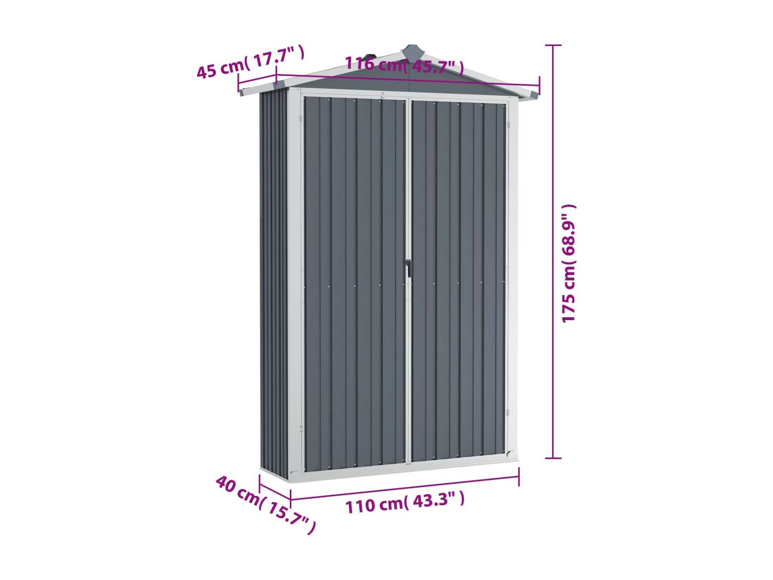 Orvault Tuinschuur 116x45x175 cm gegalvaniseerd staal grijs