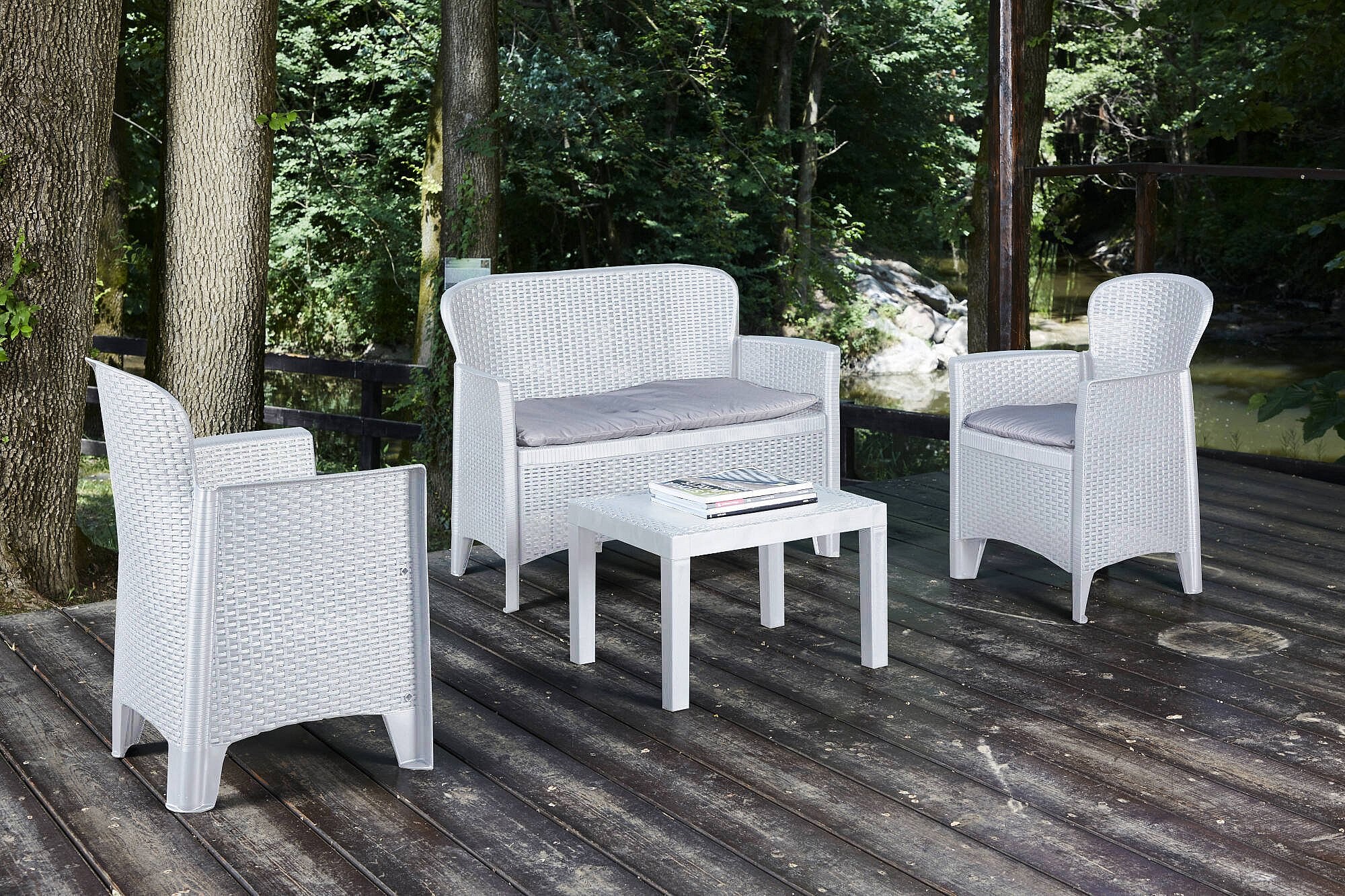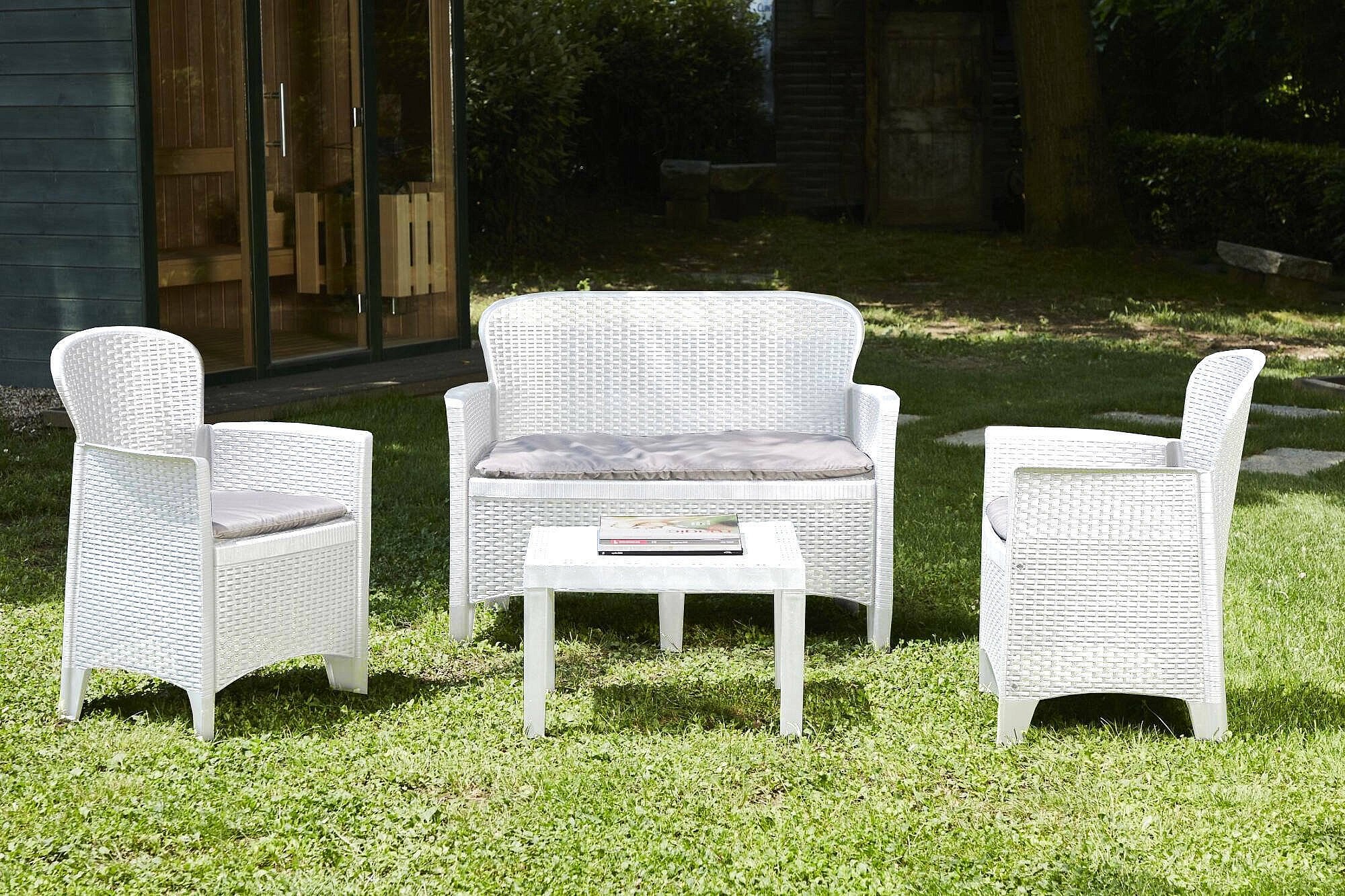 4-delige Loungeset met kussens kunststof wit NL14828