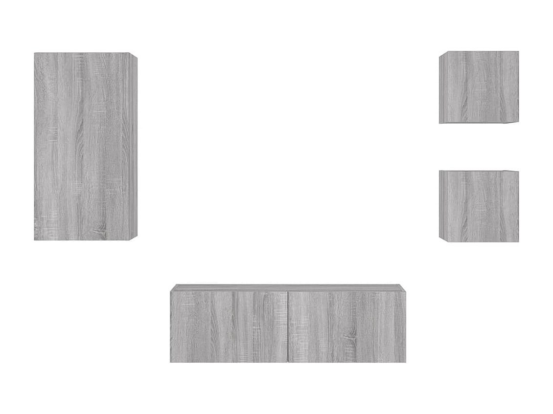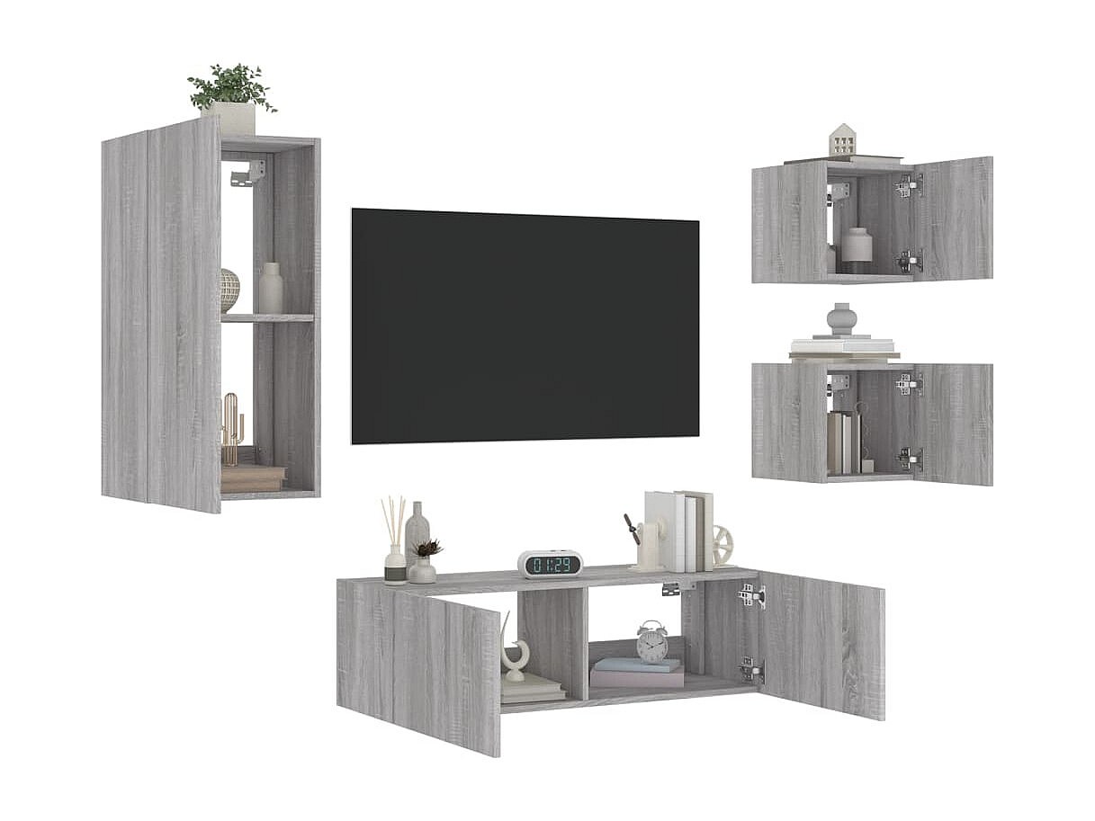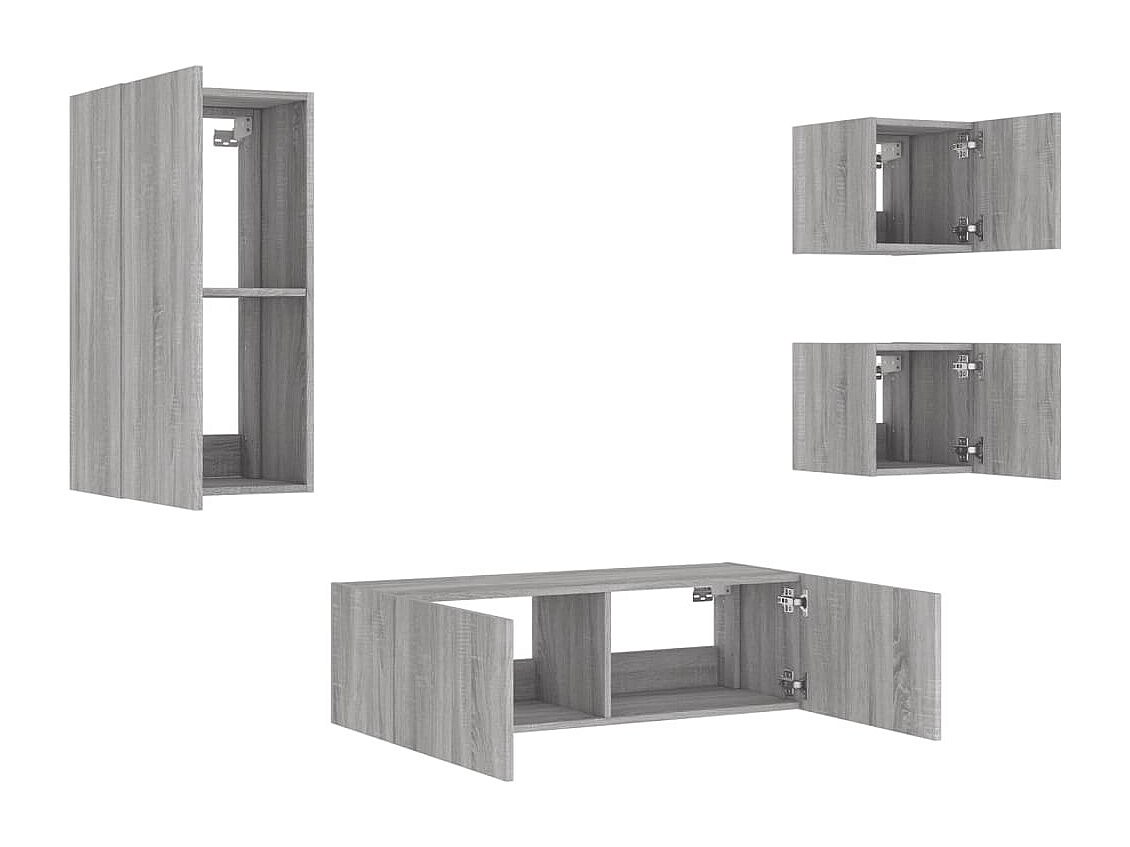 Osyra 4-delige tv-wandmeubelset met LED-verlichting grijs sonoma