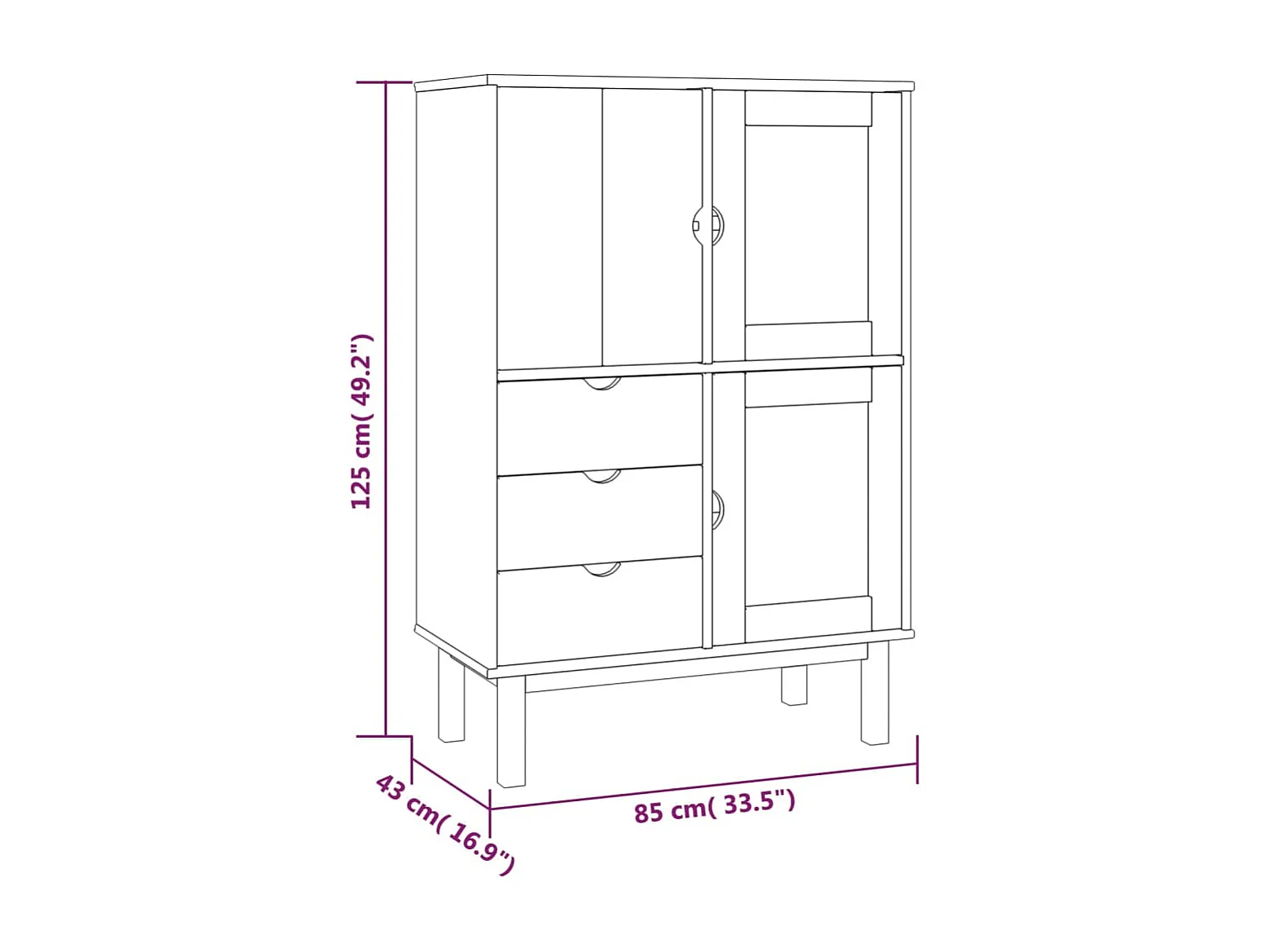 OTTA hoog dressoir bruin en wit 85x43x125 cm massief grenenhout