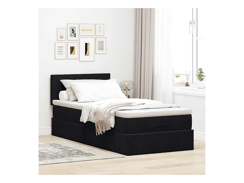 Ottoman bed met matrassen 100x200cm fluweel zwart