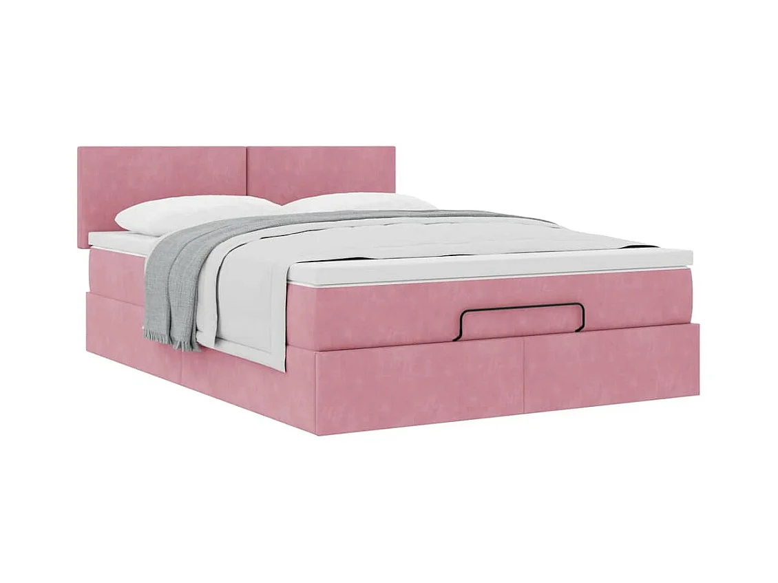 Ottoman bed met matras 140x200cm fluweel roze