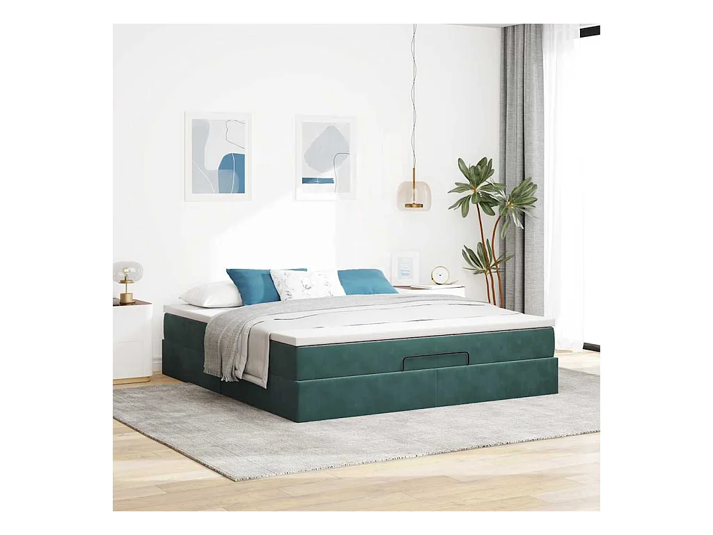 Ottoman bed met matras 160x200cm fluweel donkergroen