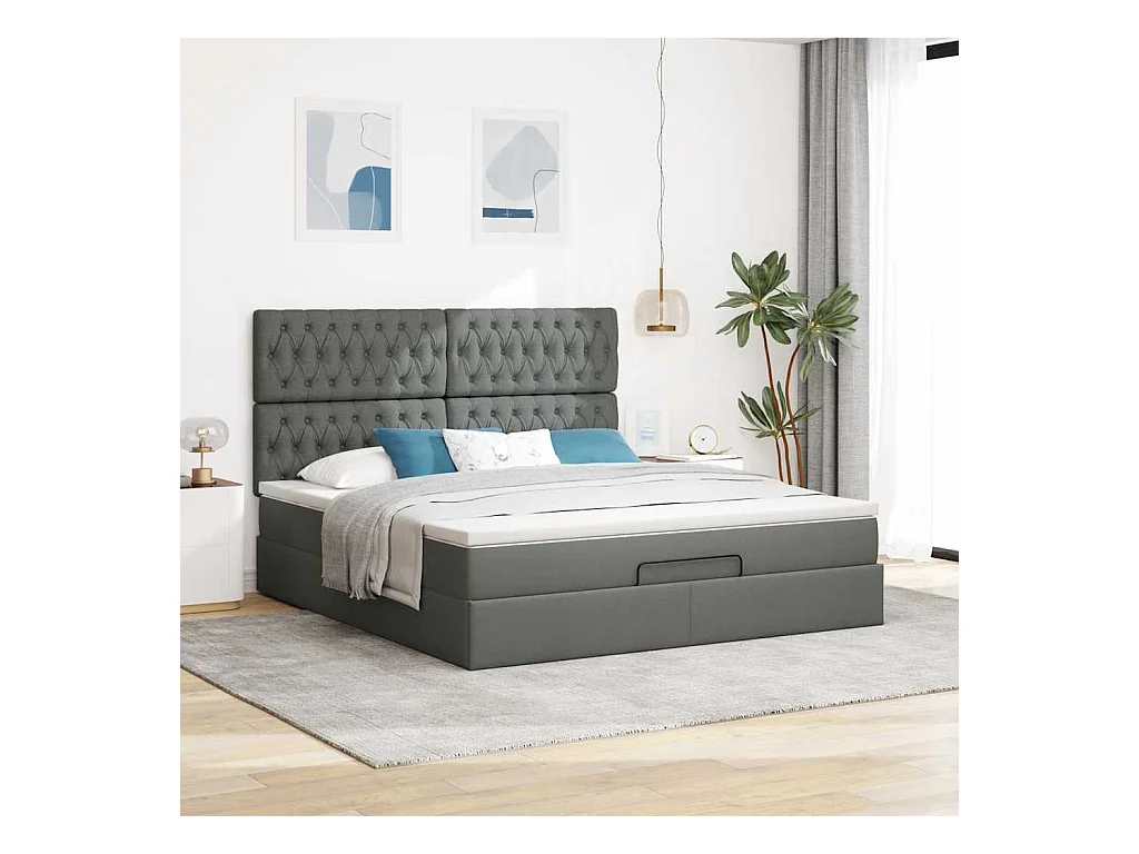 Ottoman bed met matrassen 160x200cm stof donkergrijs