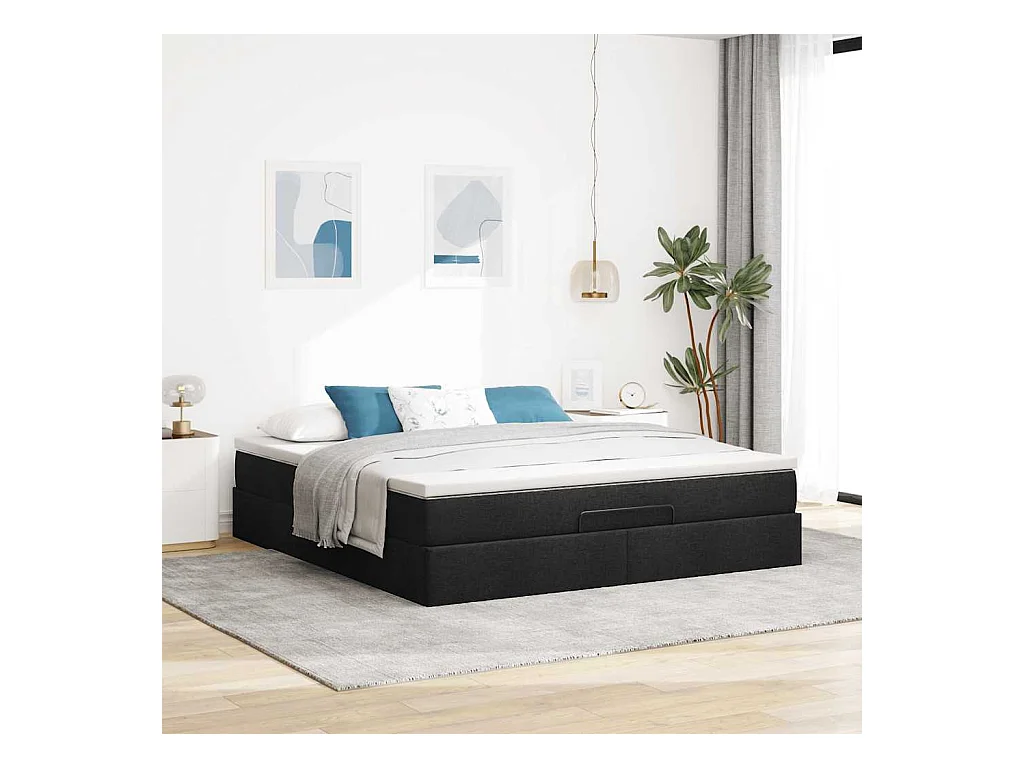 Ottoman bed met matrassen en LED's 180x200cm stof zwart