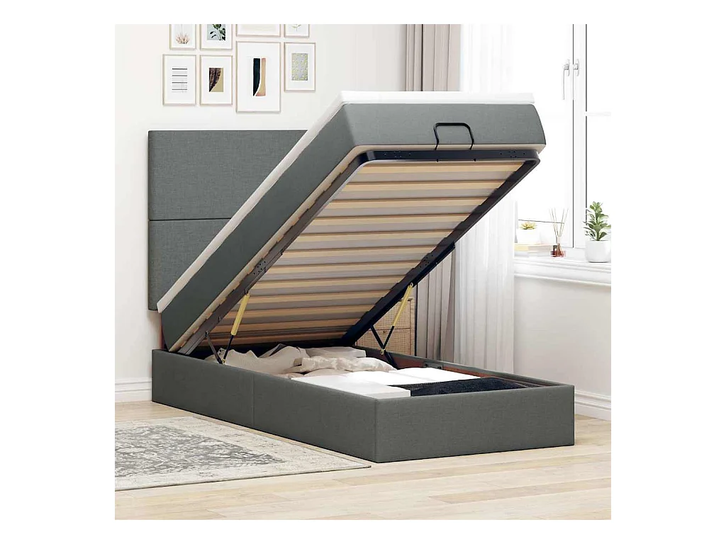 Ottoman bed met matras 80x200cm stof donkergrijs