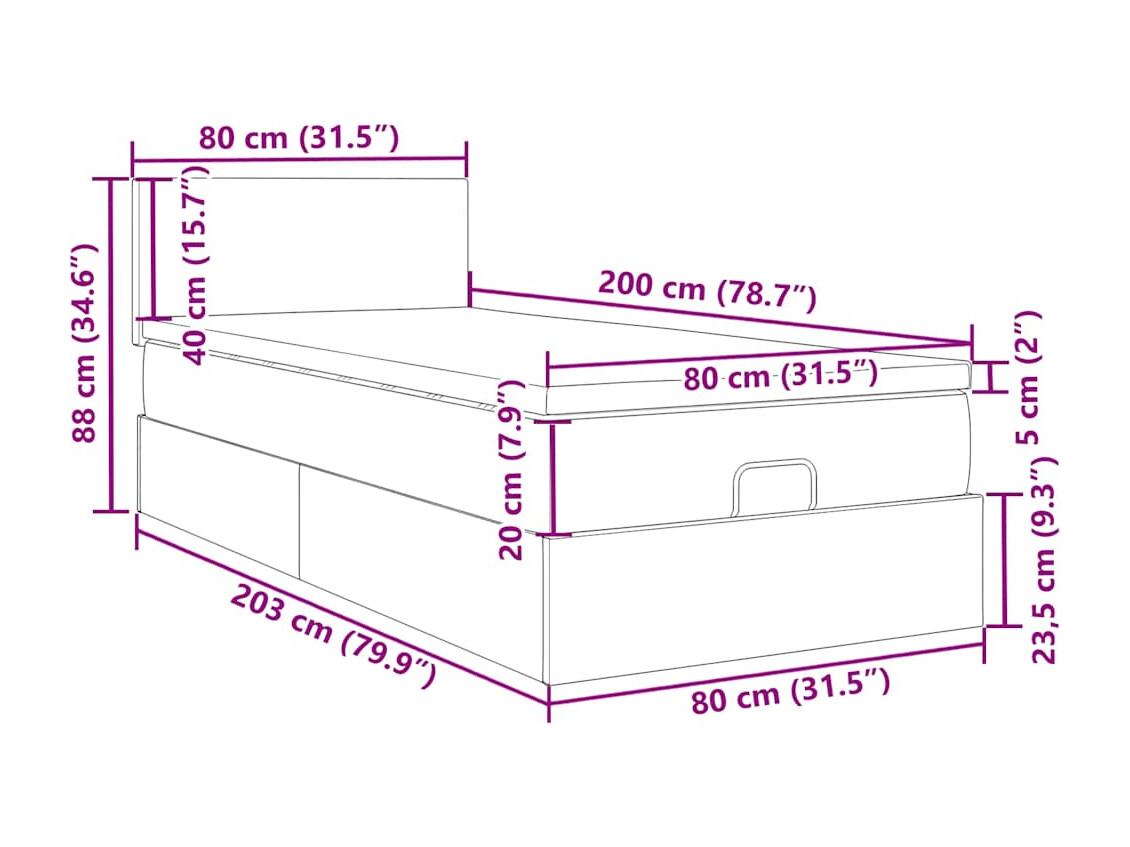 Ottoman bed met matras 80x200cm stof donkergrijs