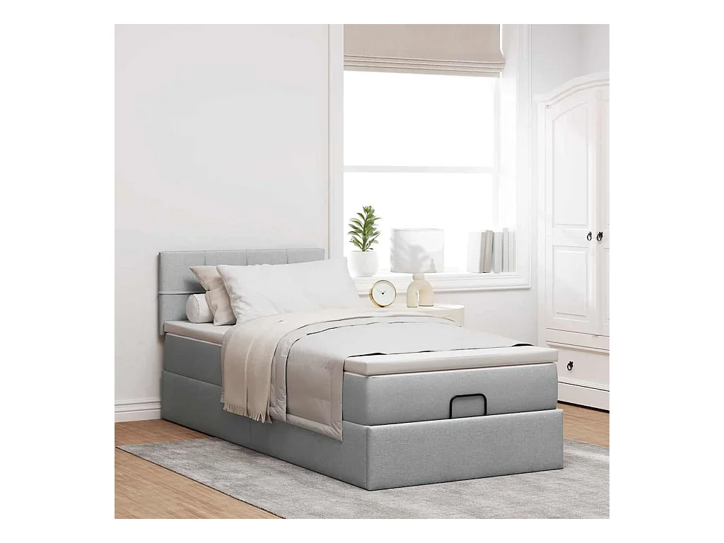 Ottoman bed met matras 90x190cm stof lichtgrijs