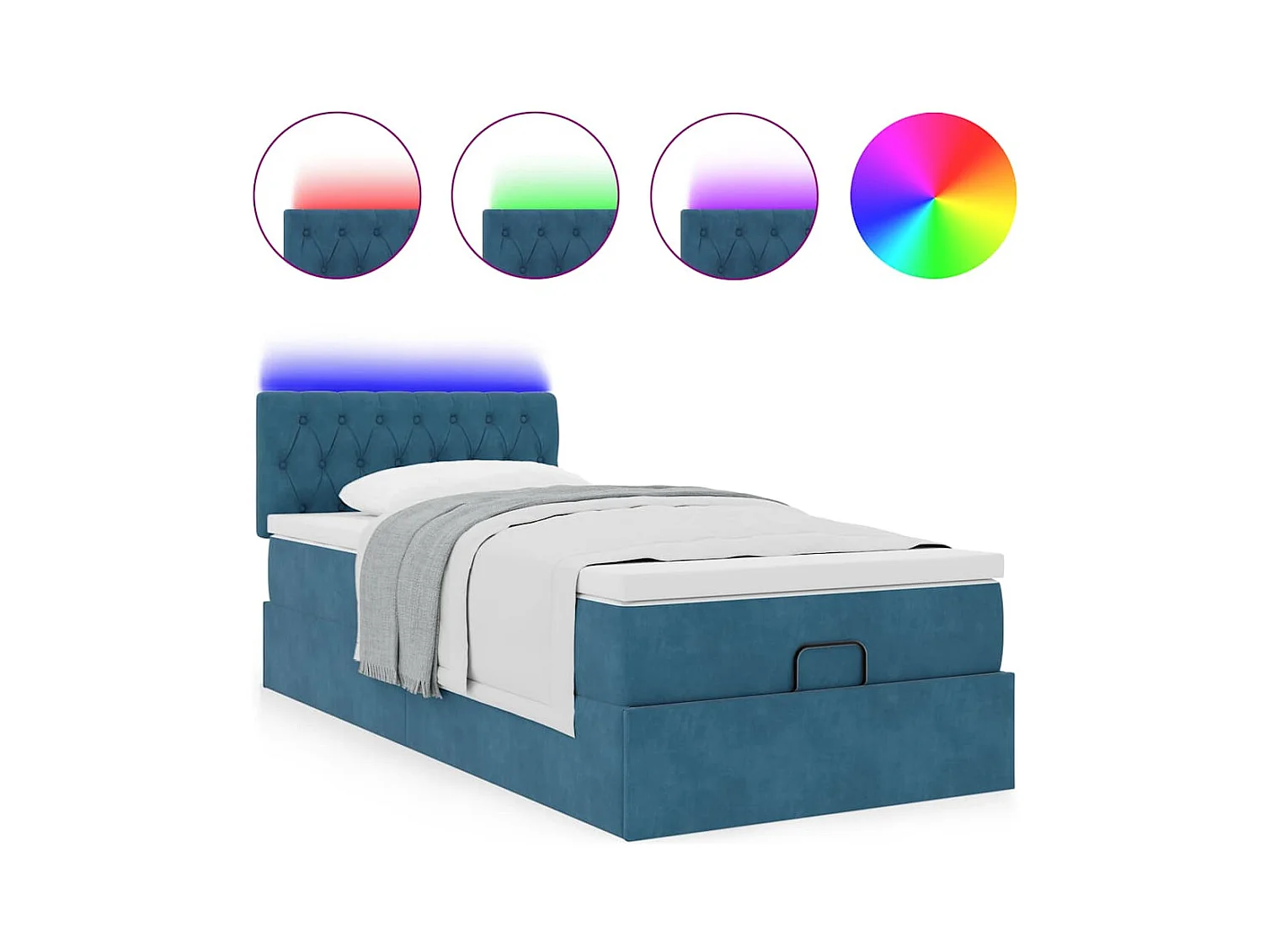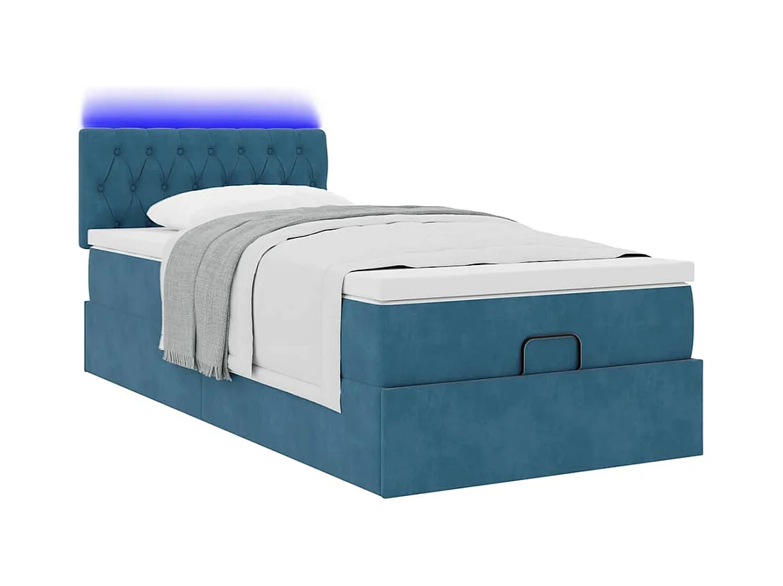 Ottoman bed met matras en LED's 100x200 cm fluweel donkerblauw