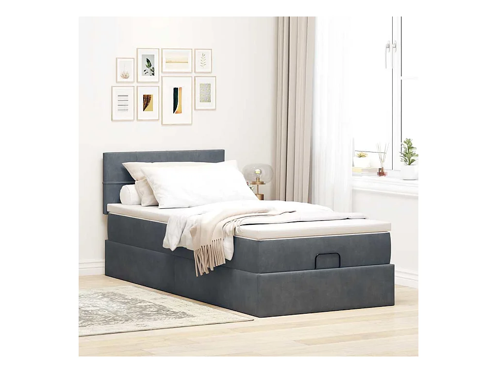 Ottoman bed met matras 100x200 cm fluweel donkergrijs