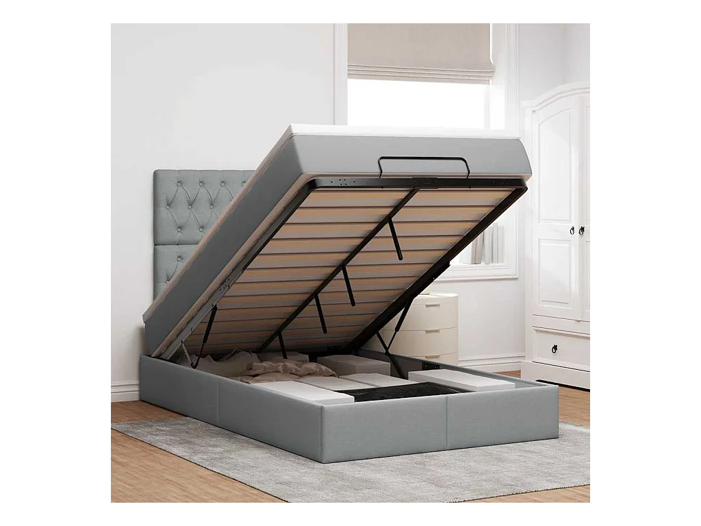 Ottoman bed met matras 120x190 cm stof lichtgrijs