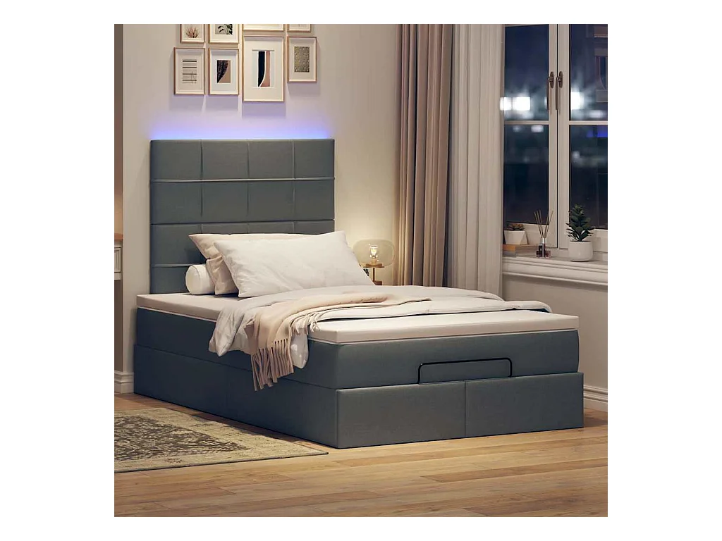 Ottoman bed met matras en LED's 120x200cm stof donkergrijs
