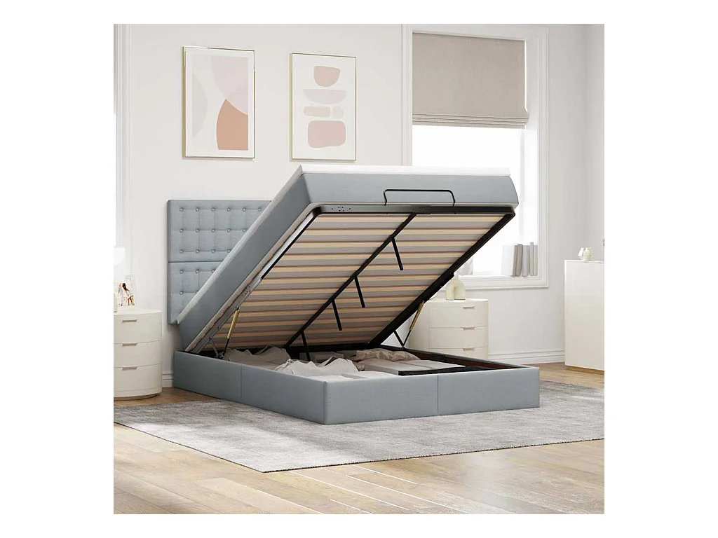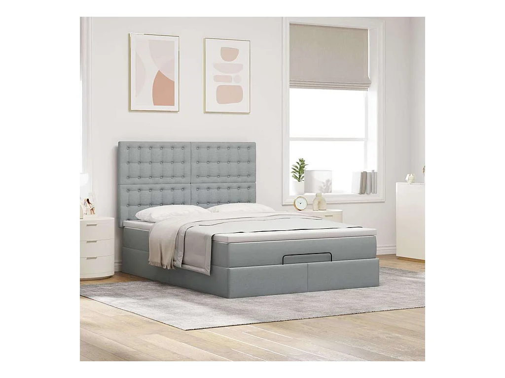 Ottoman bed met matras 140x190cm stof lichtgrijs