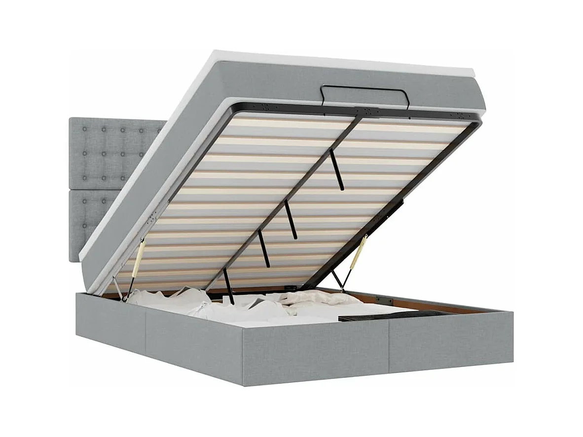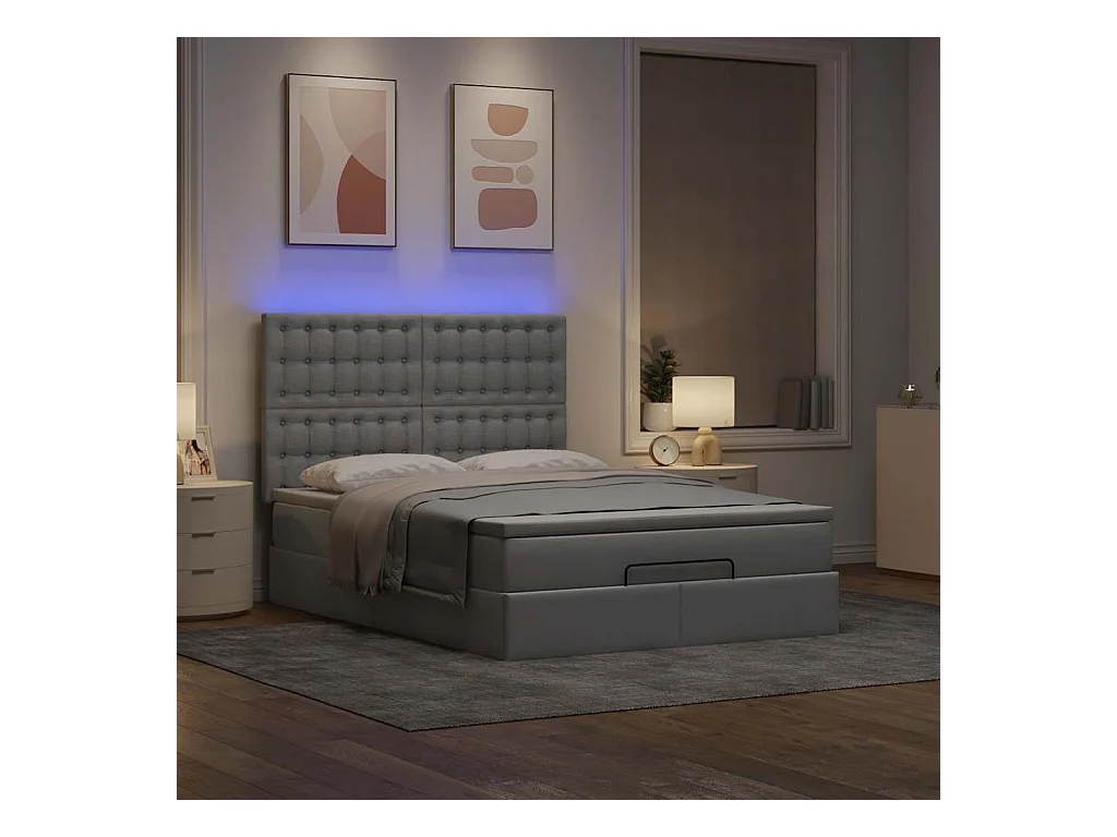 Ottoman bed met matras en LED's 140x190cm stof lichtgrijs