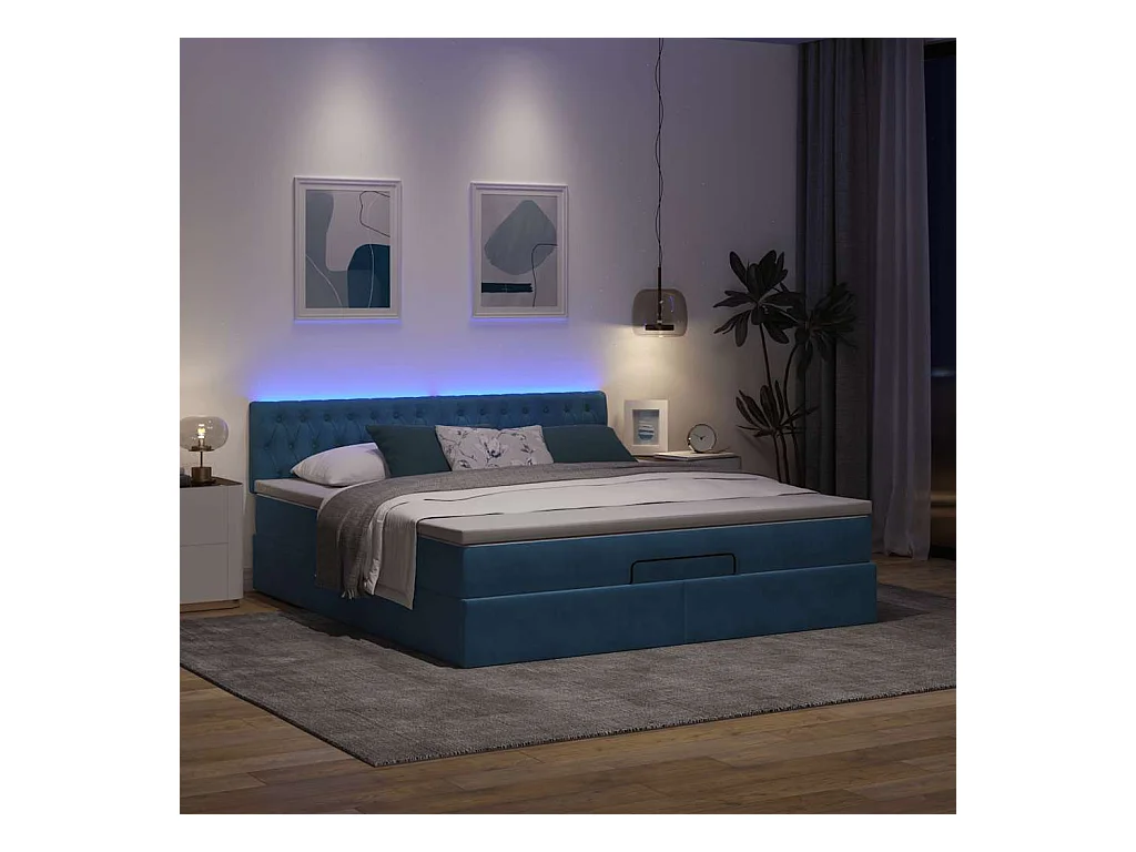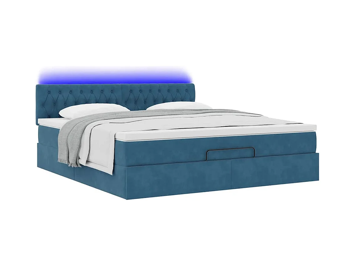 Ottoman bed met matras en LED's 160x200cm fluweel donkerblauw