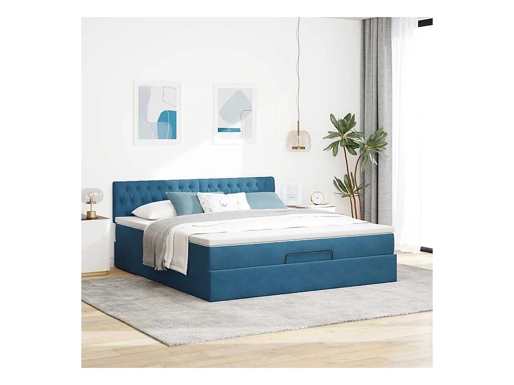 Ottoman bed met matrassen 160x200cm fluweel donkerblauw