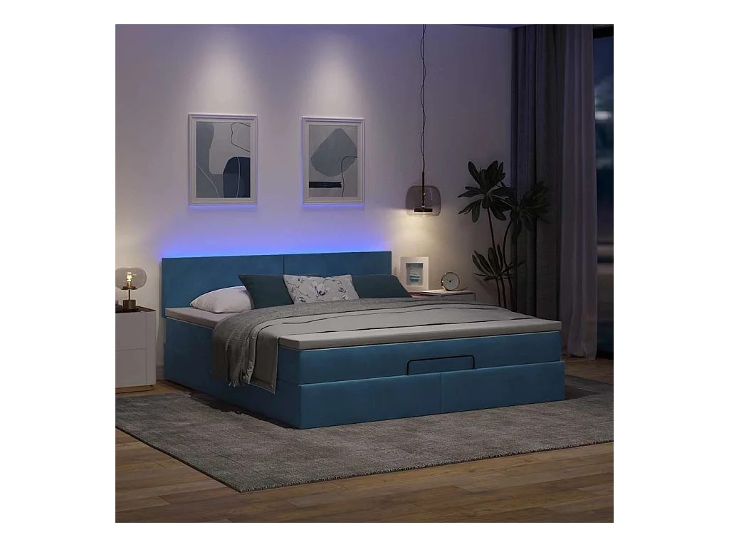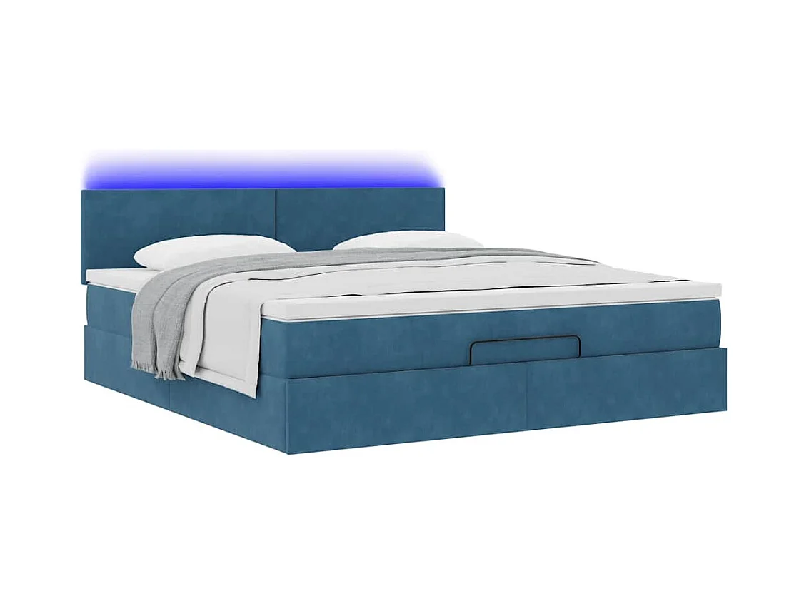 Ottoman bed met matras en LED's 160x200cm fluweel donkerblauw