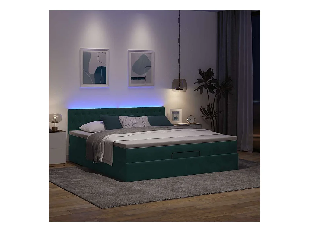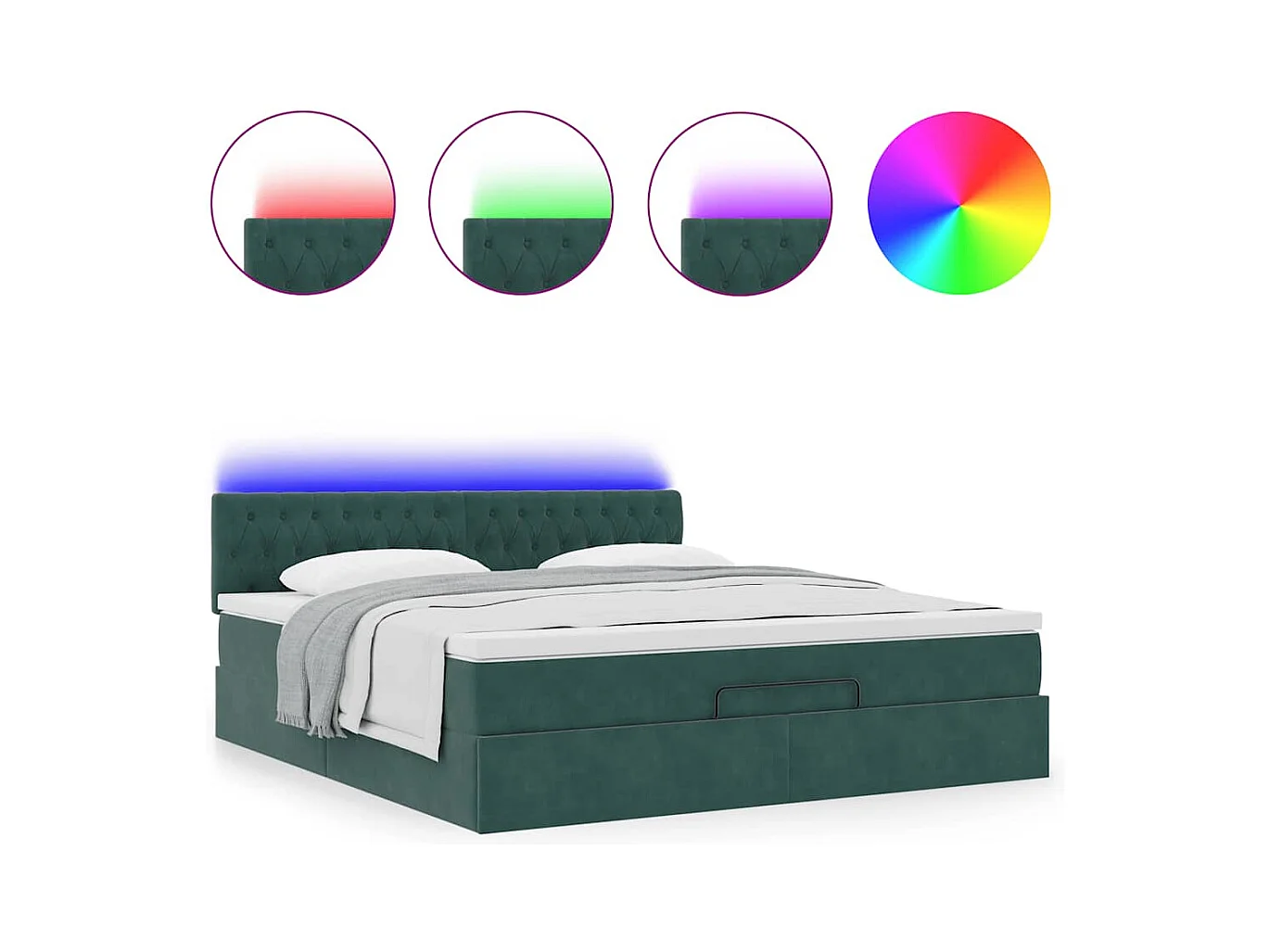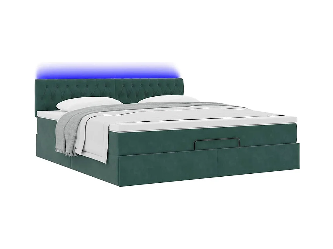 Ottoman bed met matras en LED's 160x200cm fluweel donkergroen
