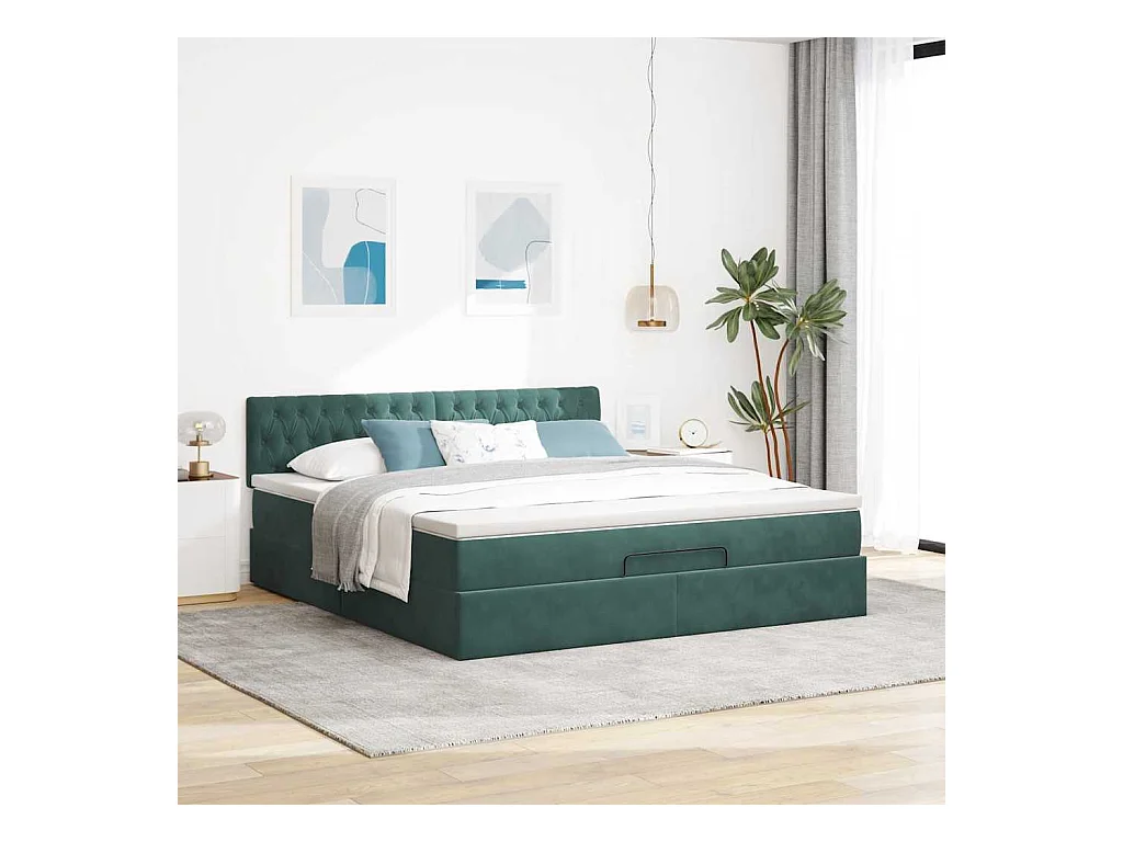 Ottoman bed met matras 160x200cm fluweel donkergroen