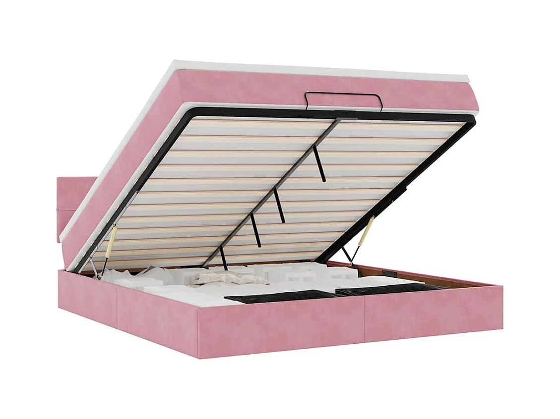 Ottoman bed met matras en LED's 160x200cm fluweel roze