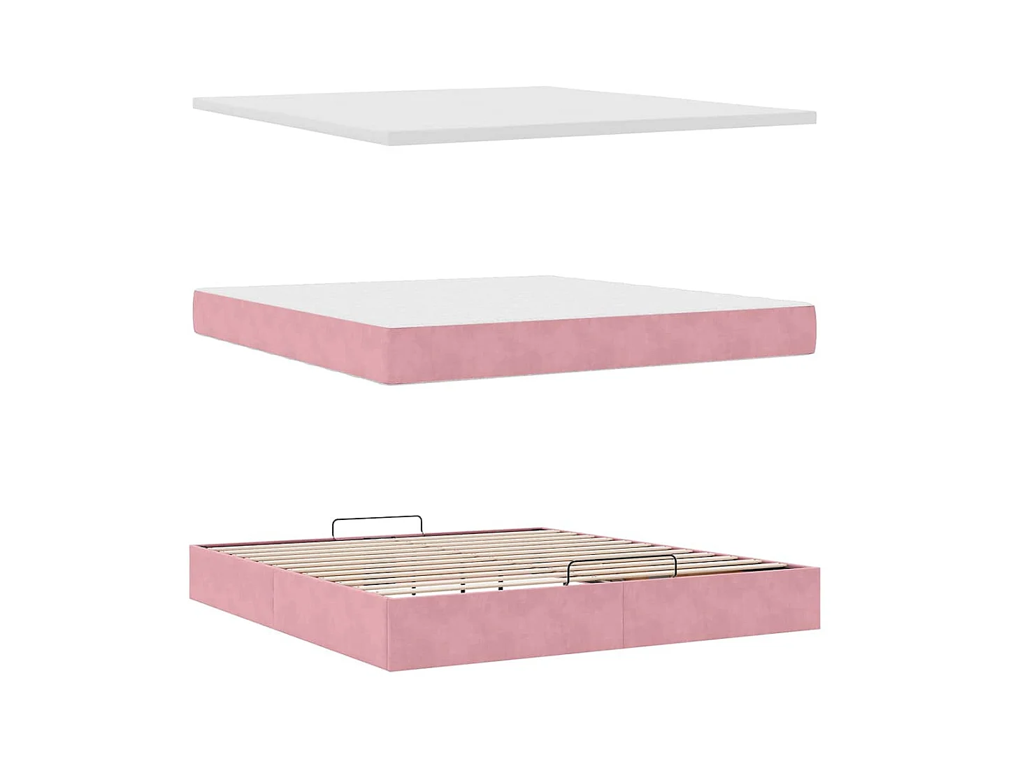Ottoman bed met matras 160x200cm fluweel roze