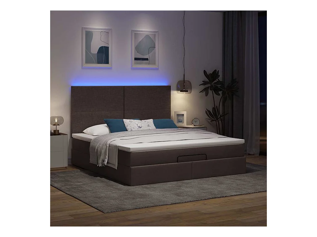 Ottoman bed met matras en LED's 160x200cm stof donkerbruin