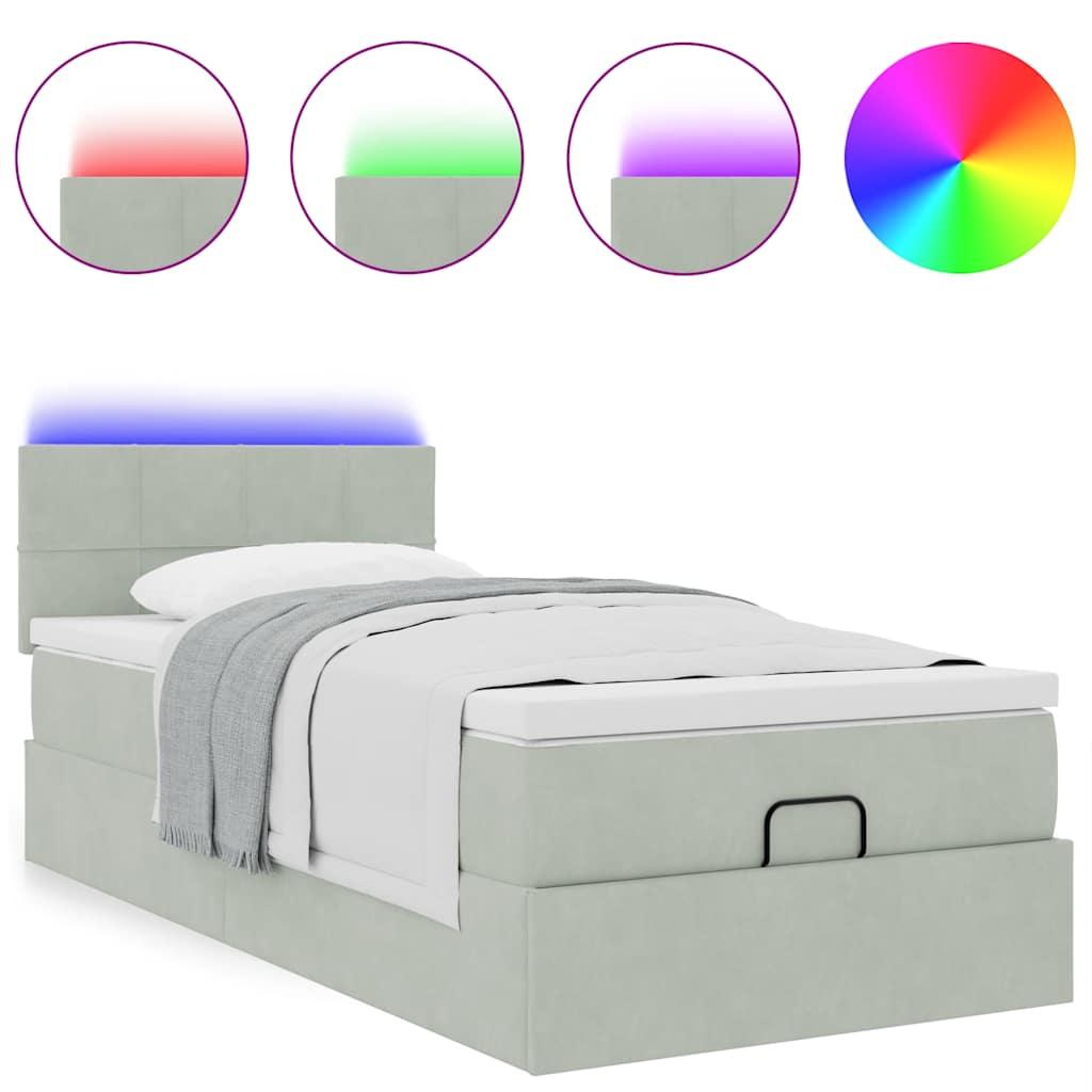 Ottoman bed met matrassen en LED's 80x200cm fluweel lichtgrijs