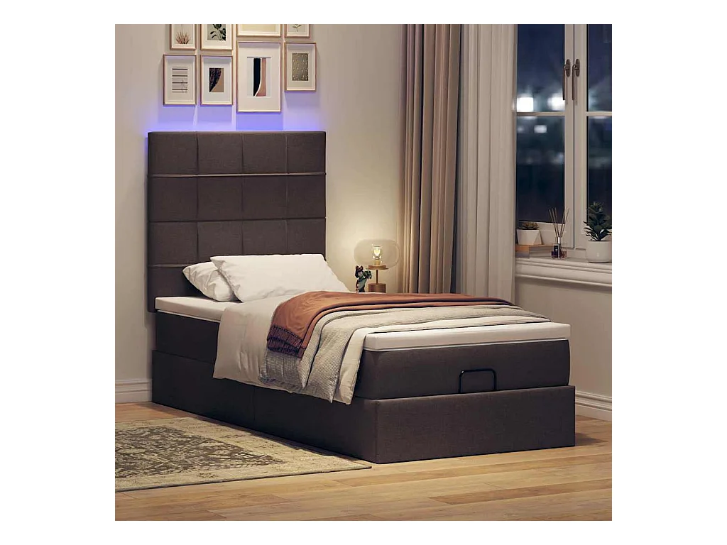 Ottoman bed met matras en LED's 90x190cm stof donkerbruin