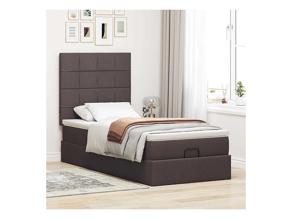 Ottoman bed met matras 90x190cm stof donkerbruin