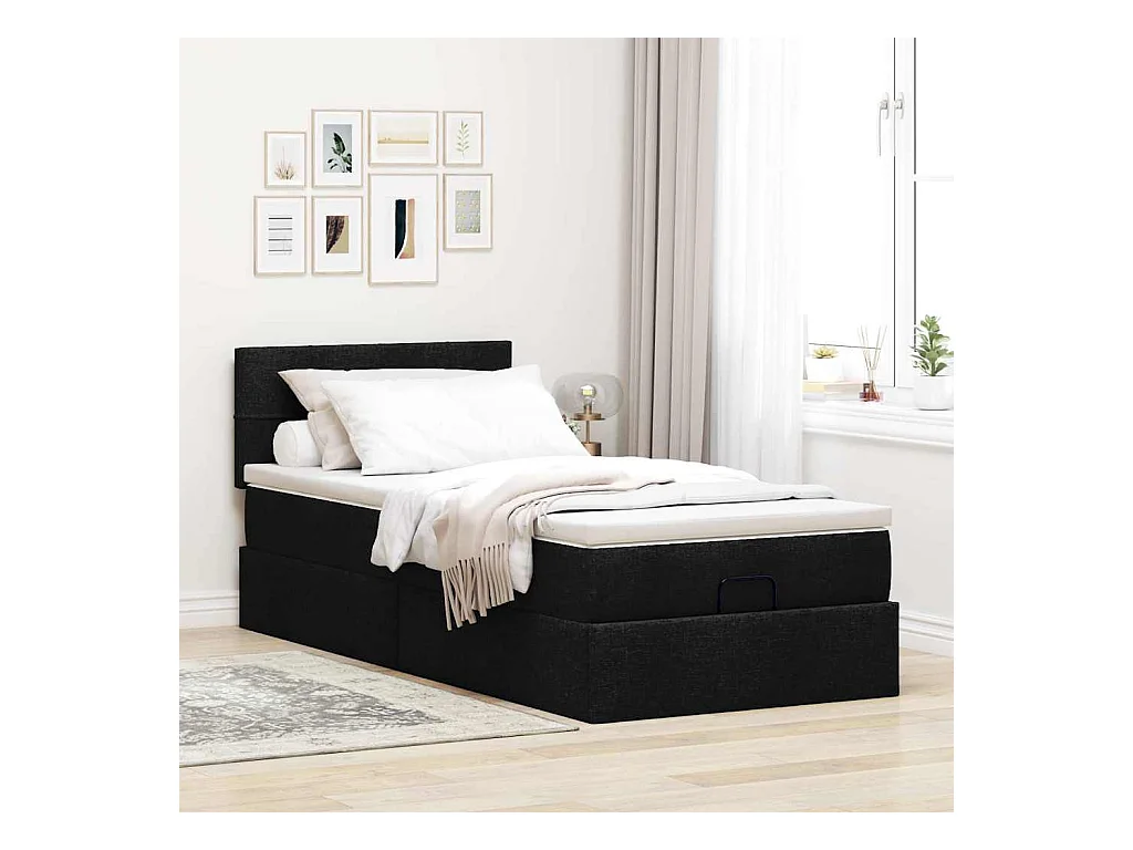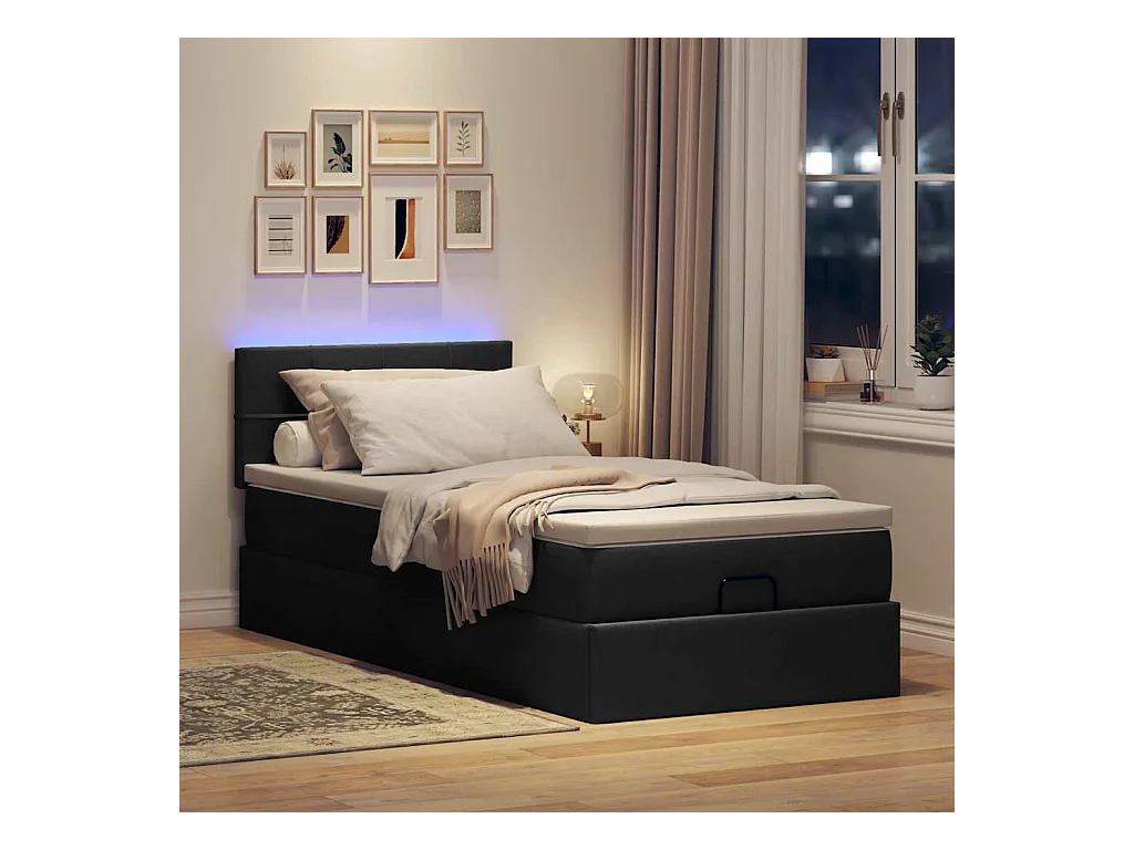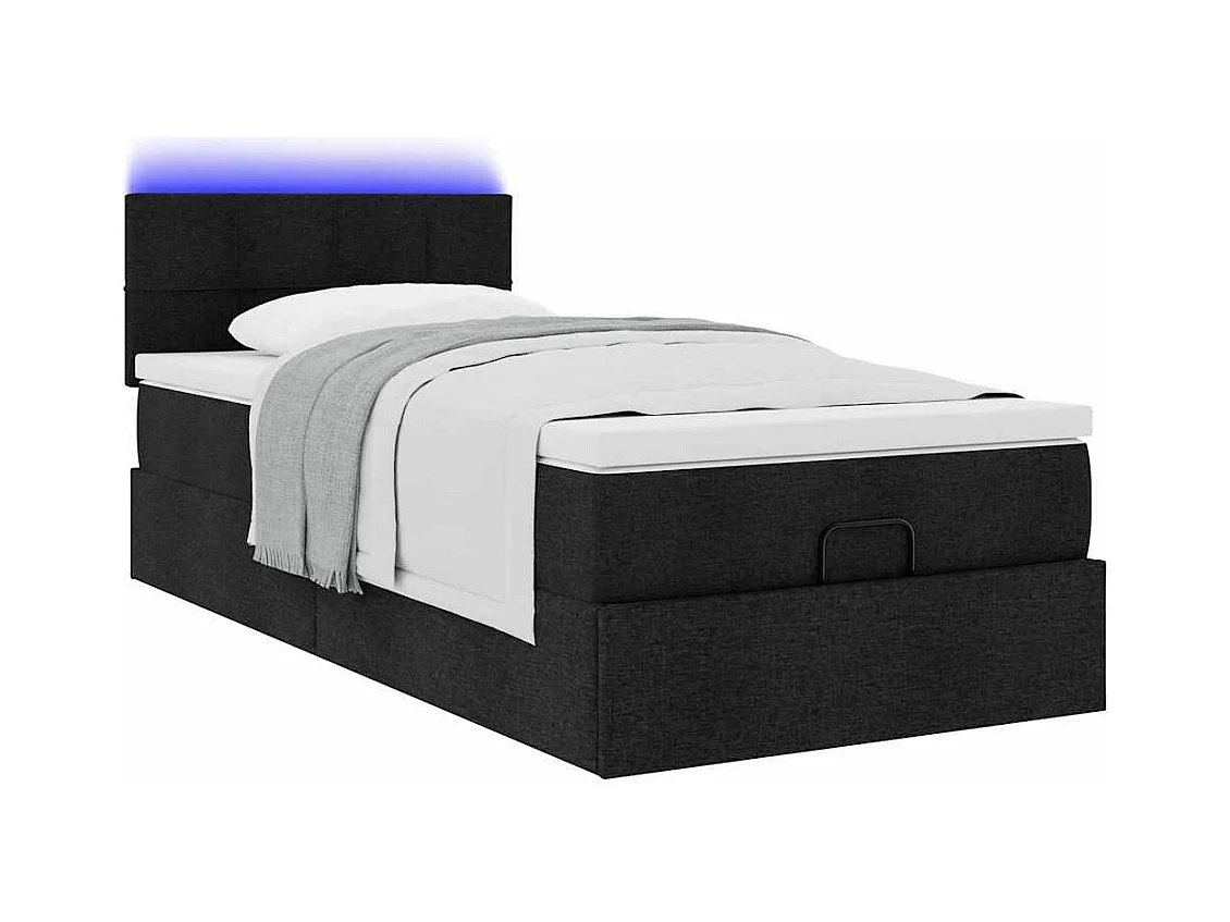 Ottoman bed met matras en LED's 90x200cm stof zwart