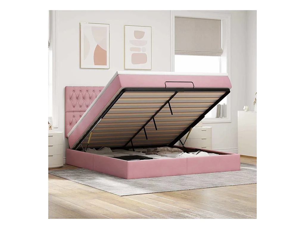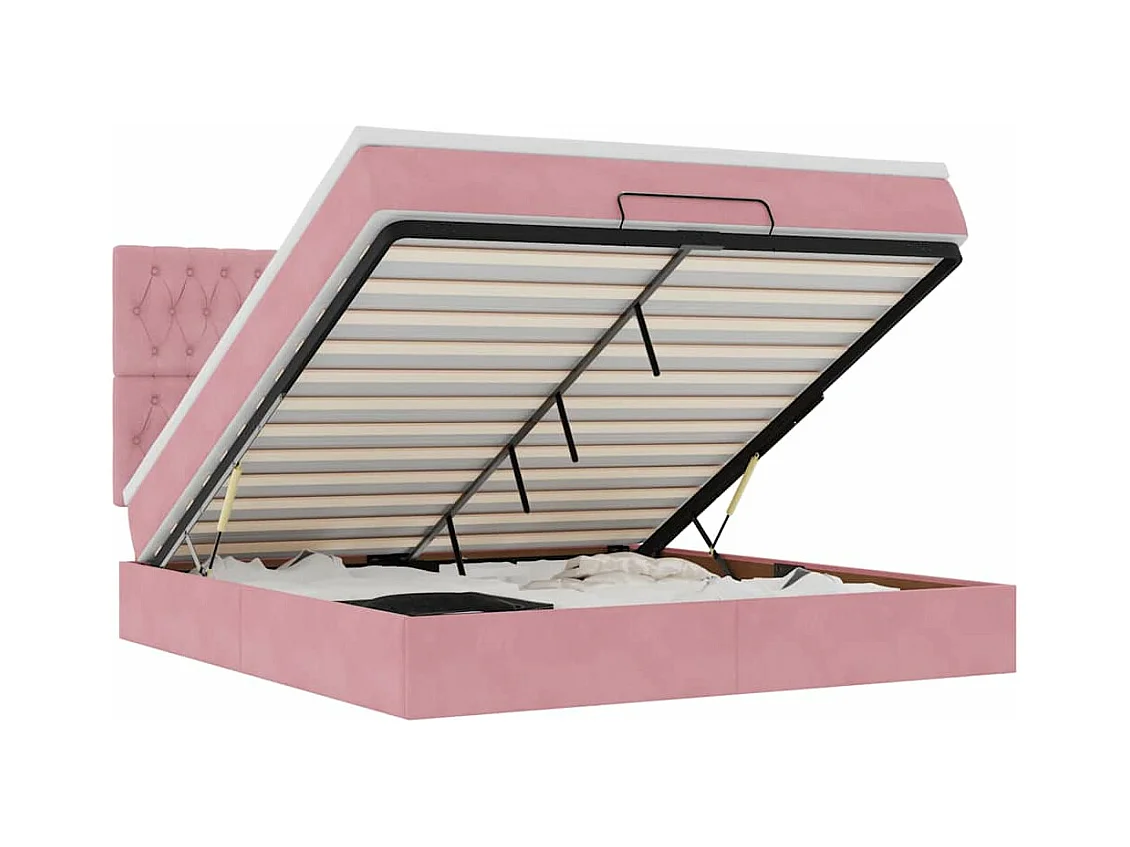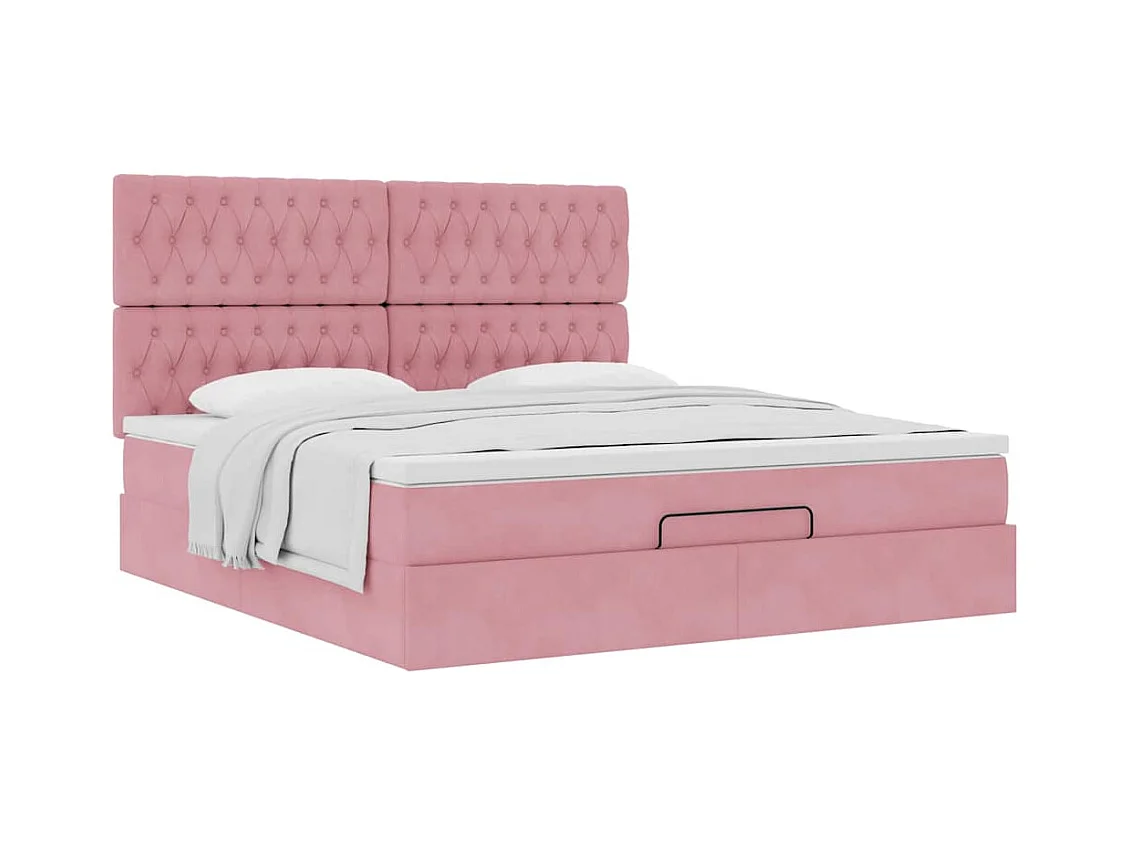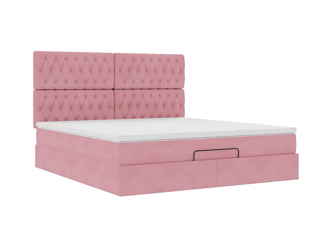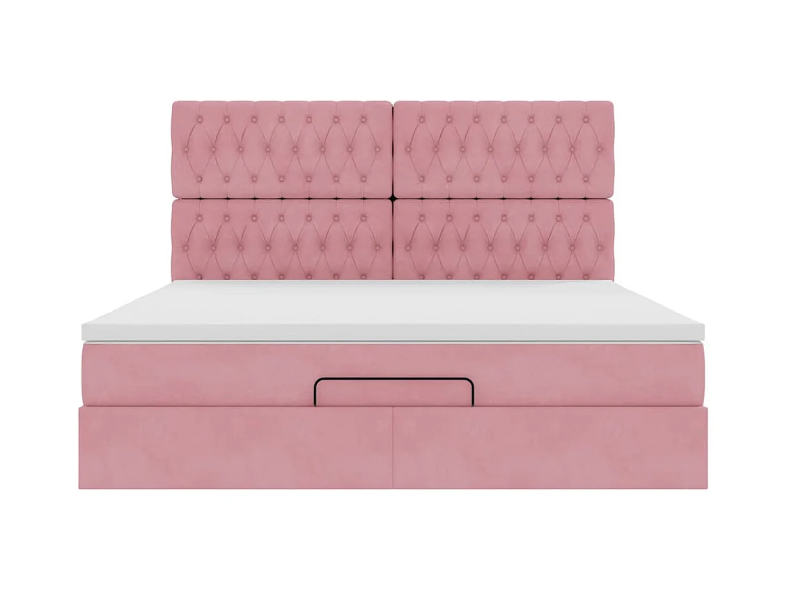 Ottoman bed met matrassen 160x200cm fluweel roze