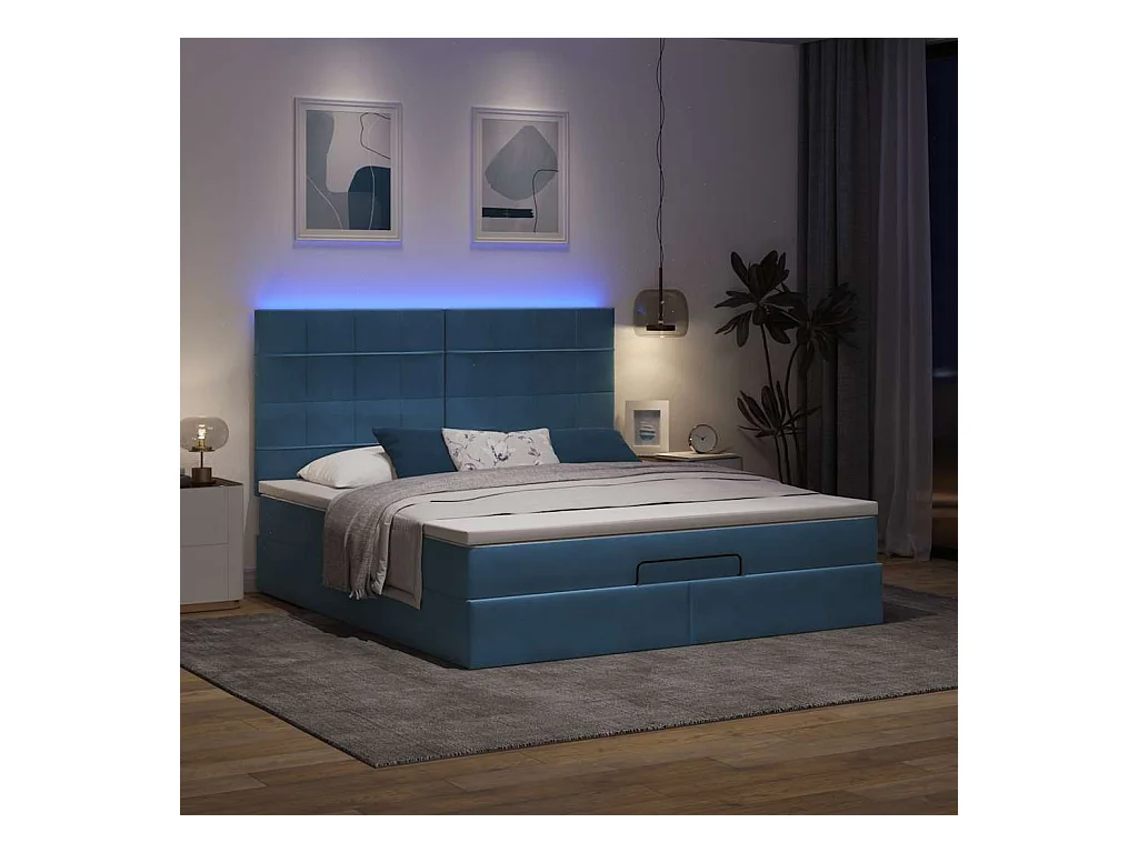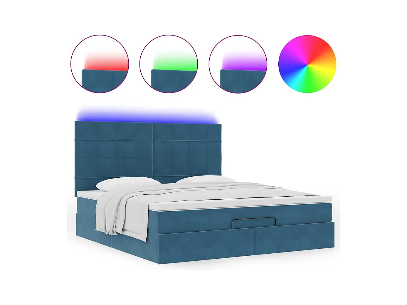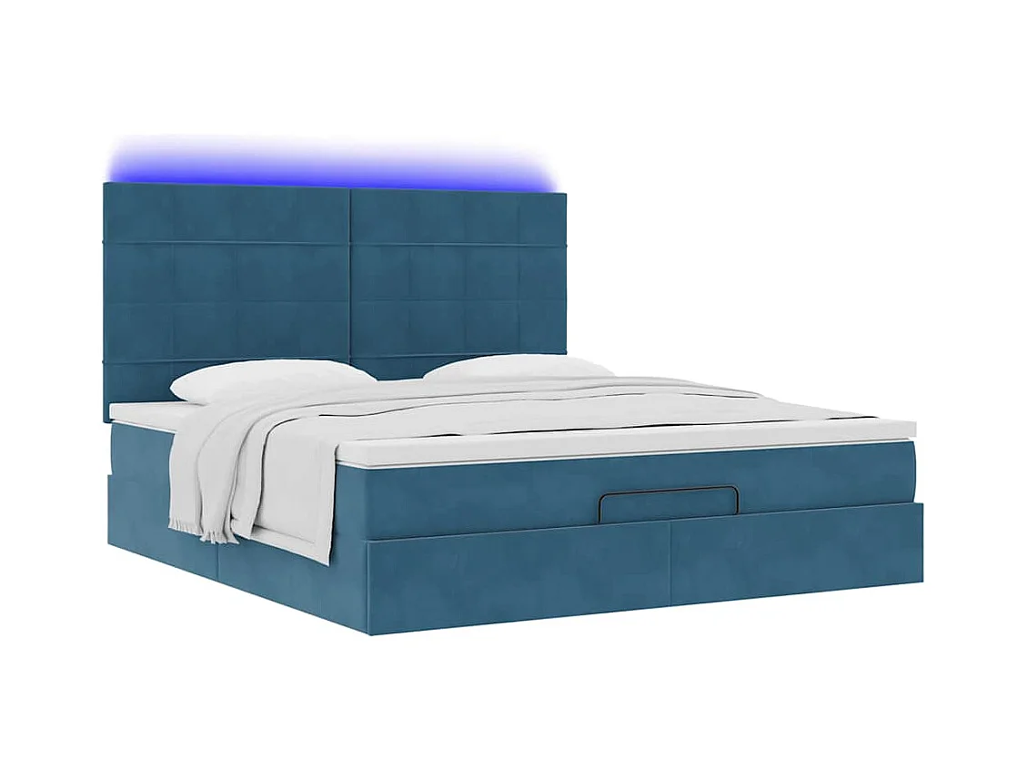 Ottoman bed met matras en LED's 160x200cm fluweel donkerblauw