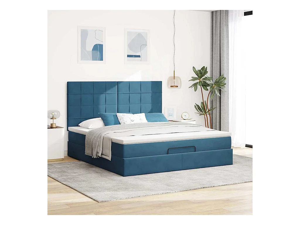 Ottoman bed met matrassen 160x200cm fluweel donkerblauw