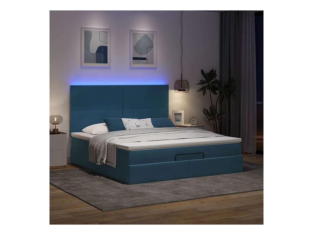 Ottoman bed met matras en LED's 160x200cm fluweel donkerblauw