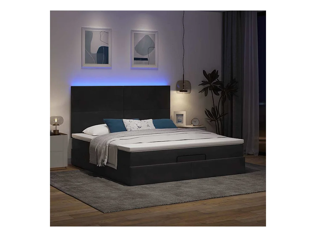 Ottoman bed met matrassen en LED's 160x200cm fluweel zwart