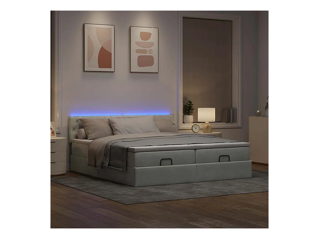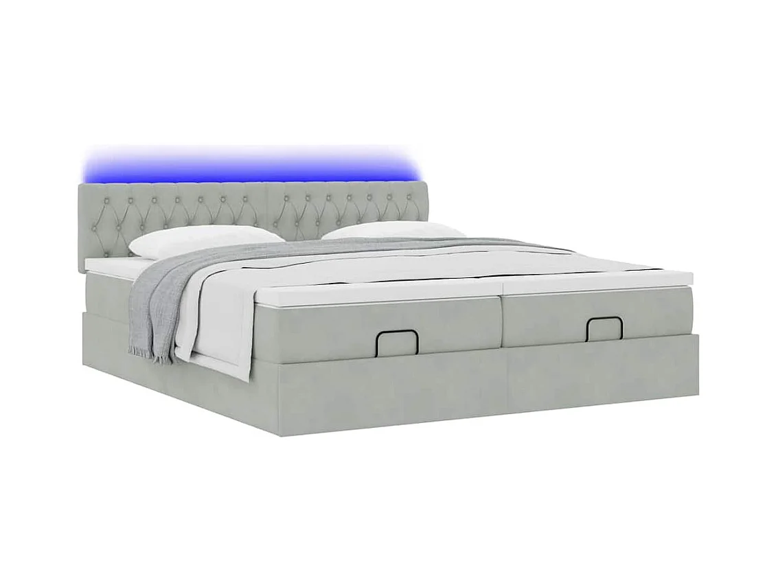 Ottoman bed met matrassen en LED's 180x200cm fluweel lichtgrijs
