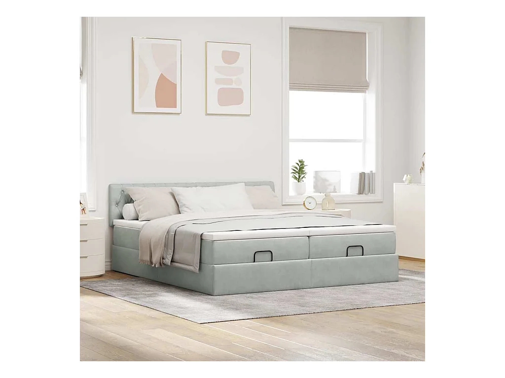 Ottoman bed met matrassen 180x200cm fluweel lichtgrijs